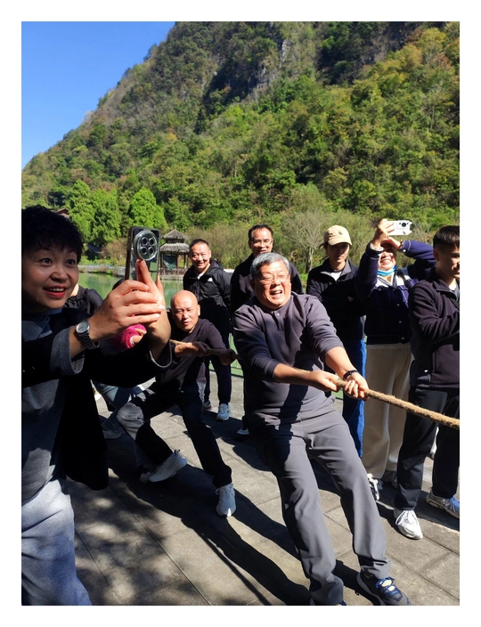 山水间的趣味拔河,用力的模样超有感染力,这就是团队的快乐呀!