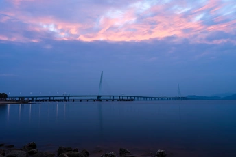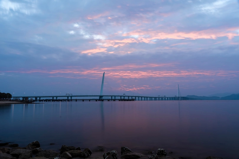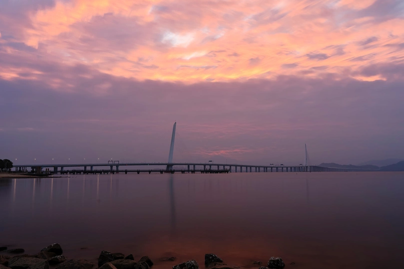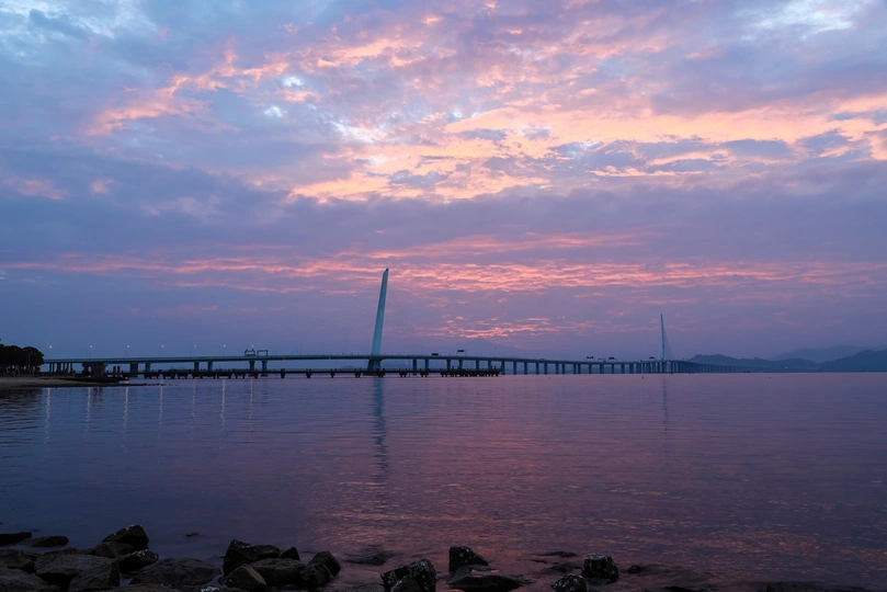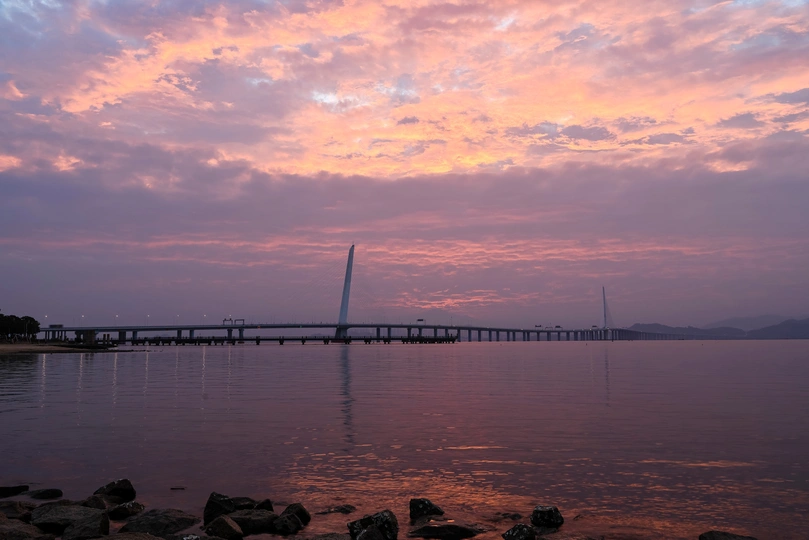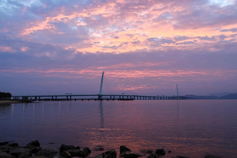深圳湾大桥日出朝霞