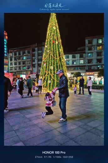 圣诞树下的童趣瞬间,是冬日里最暖的光,老顽童牵着小顽童,把平凡的夜晚晃成了甜甜的童话