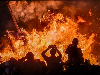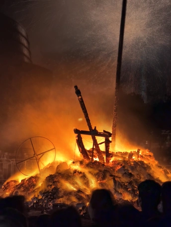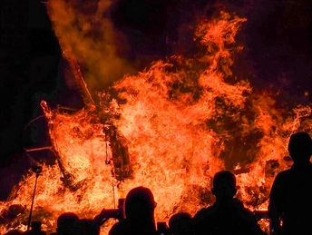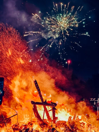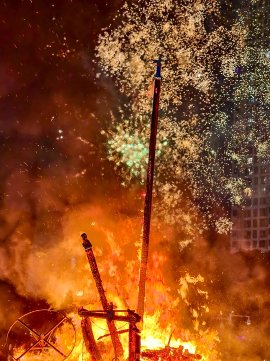 厦门送王船钟山的化吉时刻,是烈火与烟花的盛放。人们的激情与膜拜也在此刻达到顶点。