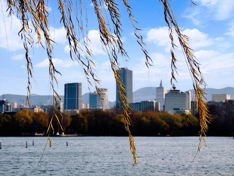 镜头定格济南大明湖的初冬画面,湖水的波纹与前景的枯苇保留了自然的纹理层次,天空的蓝调与云层的细节呈现得更为纯净。湖面如镜,将城市天际线与远处的山峦框入画面,金黄的岸柳作为过渡,柔化了建筑的硬朗线条,让自然景致与都市轮廓达成了巧妙的视觉平衡。这帧画面里,既有明湖的温婉诗意,也藏着城市生长的鲜活气息,是长焦视角下,自然与人文碰撞出的独特韵律。
