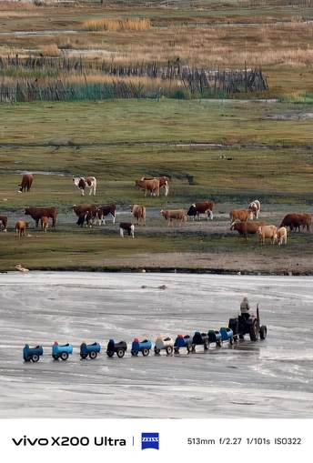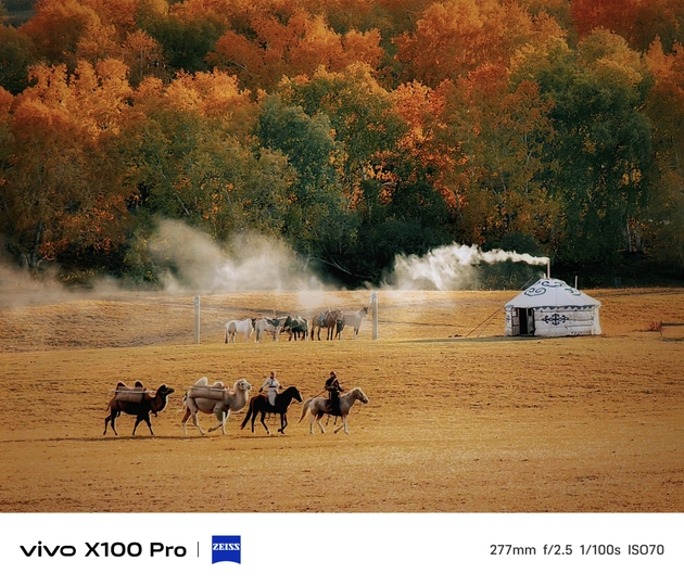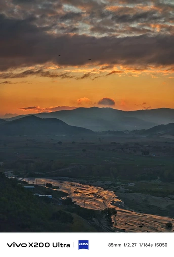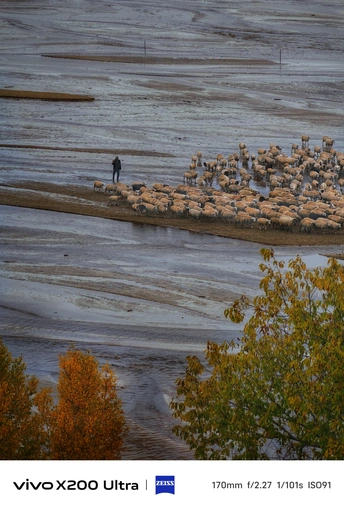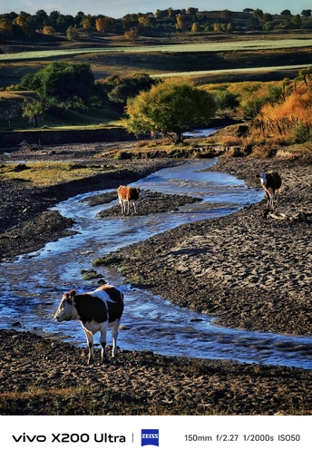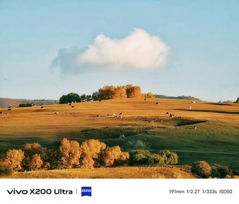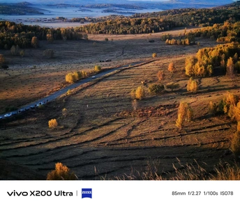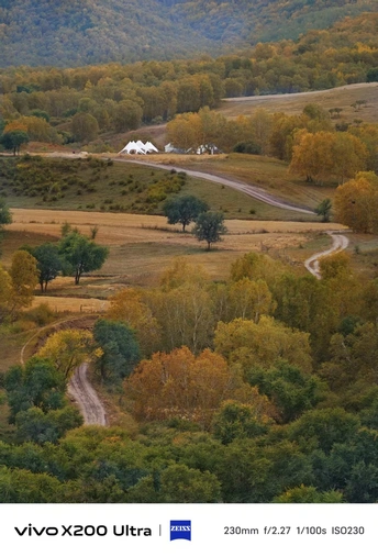 X200 Ultra的长焦像根“魔法吸管”:将弯路上的白帐篷、暖黄树尖、溪流边、帐篷前的牛羊群都成了画里的碎糖;再嘬一口远山的落日,把熔金似的云、裹光的河,全揉成眼前能碰着的暖。远的景、软的风,都被它拉得贴了心。
