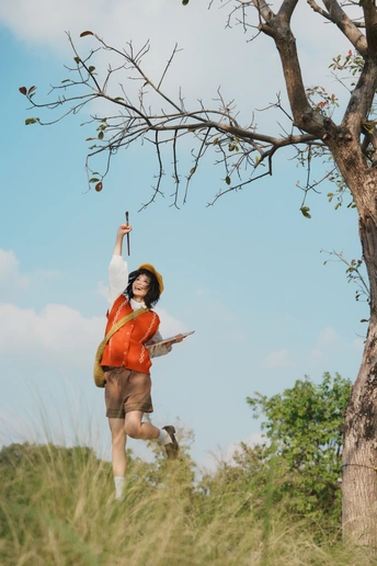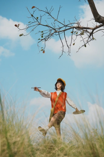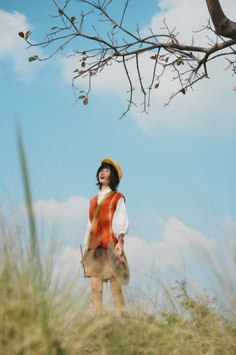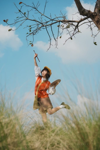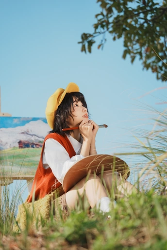 “如果宫崎骏的画会呼吸,大概就是她的模样。” 橙色的毛衣像剥开的阳光🧡 黄色贝雷帽藏着一整个秋天的暖意💛 她忽然跳起来—— 画板在肩,画笔在手,短发在风里跳舞 米色短裤下跃起的双腿, 仿佛下一秒就要踩上软绵绵的。 📸 低机位大景深小秘诀: 蹲下来,镜头往上抬 让树冠成为天然相框 等她跃起的瞬间按下快门 ——咔嚓! 天空、白云、跃动的身影 还有藏不住的,快要溢出来的生命力💫 出镜@加嘉 📷索尼A7C2-FL滤镜直出色彩+腾龙70-180/f2.8 下午3-4点自然光线拍摄