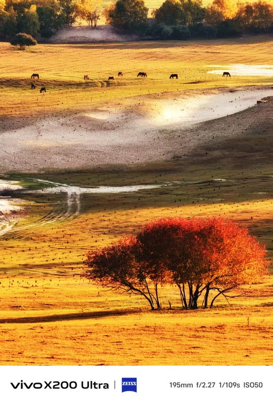 乌兰布统的秋,被#vivo X200Ultra 拍得刚刚好,草原的金、红树的艳,都藏在镜头里啦~