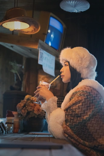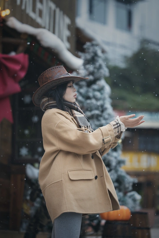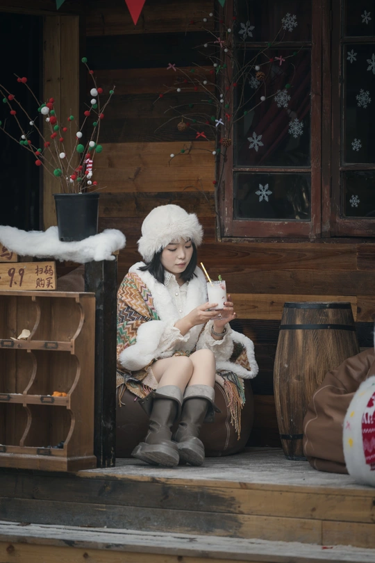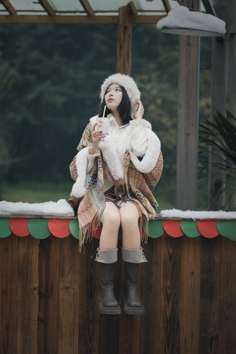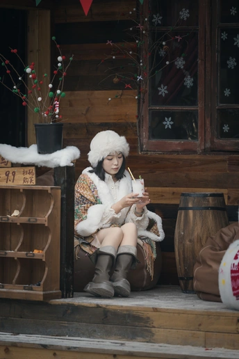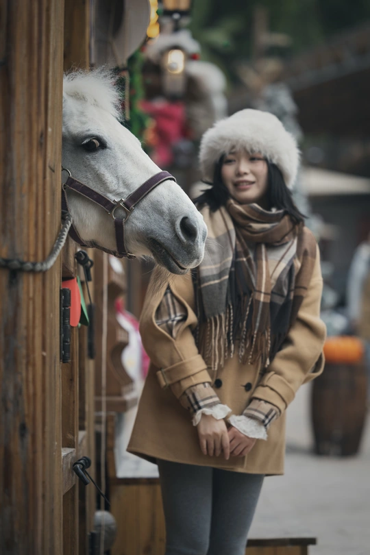 雪落肩头,静观天地。 马场整装,目光如炬。 白马探首,相视莞尔。 林径徐行,心随步移。