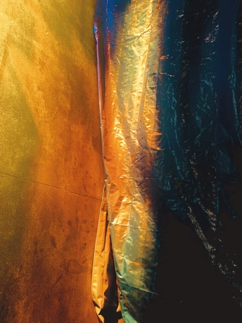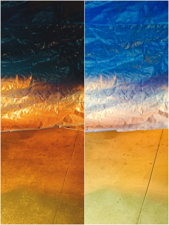 是一块雨布,我是一个有点近视的人,当时没带眼镜被它吸引去了.....午后的阳光总爱制造意外惊喜,当它斜斜地泼洒在这块旧雨布上时,原本单调的防水布料,突然被揉碎成了一片晃动的棱镜海。雨布的褶皱像是被风揉出的波纹,阳光钻过这些起伏的纹路,在布面折射出斑斓的光带——钴蓝叠着莓红,柠檬黄绕着薄荷绿,还有细碎的银白光点,像撒了一把揉碎的星星。这些色彩不是规规矩矩地铺展,而是随着布料的褶皱蜿蜒,像溪流淌过鹅卵石滩,又像晚霞被扯成了丝絮,缠在雨布的纹路里。 这块雨布许是在风雨里守了许久,边角还留着被雨水打湿的浅痕,可此刻被阳光吻过,竟生出了油画般的质感。那些五颜六色的光,不是刻意调配的颜料,而是自然撞出来的浪漫,是阳光与布料的一场即兴共舞。 我站在旁边看了许久,风轻轻掀动雨布的边缘,光带也跟着晃悠,像一捧流动的彩虹被兜在布面里。原来平凡的物件,只要被阳光偏爱,就能绽放出惊艳的光彩。生活里的美好大抵也是如此,藏在不起眼的角落,等一束光来,就亮出满身温柔的斑斓。