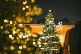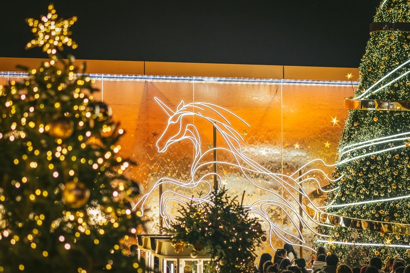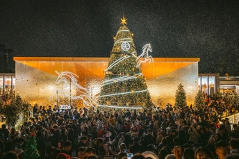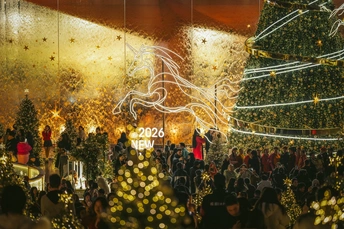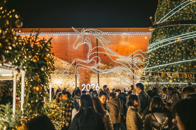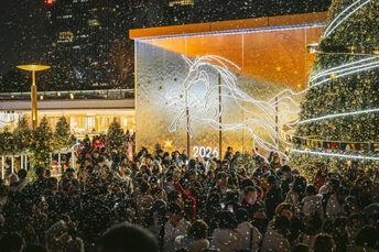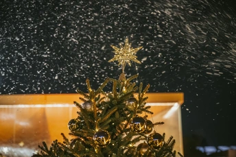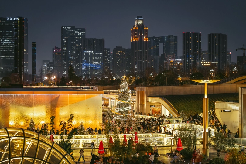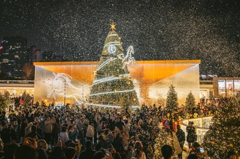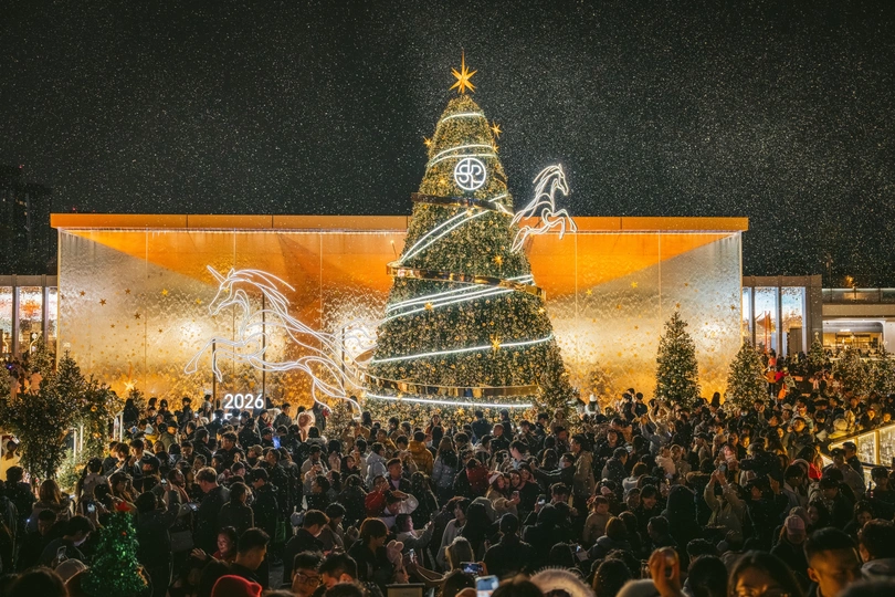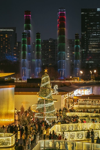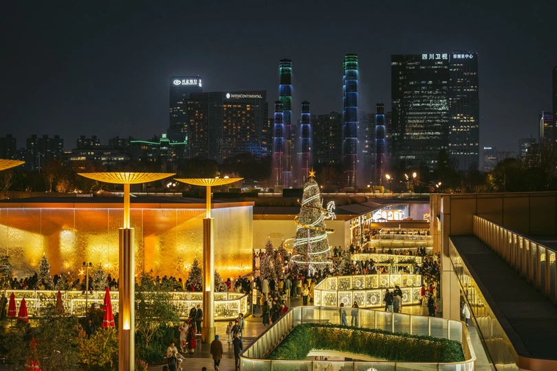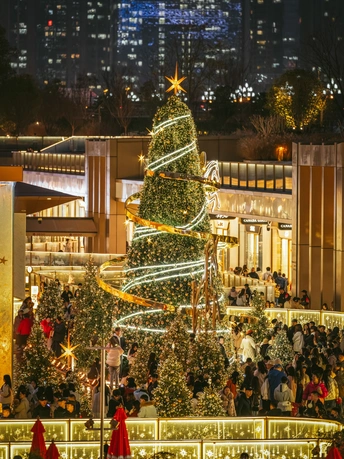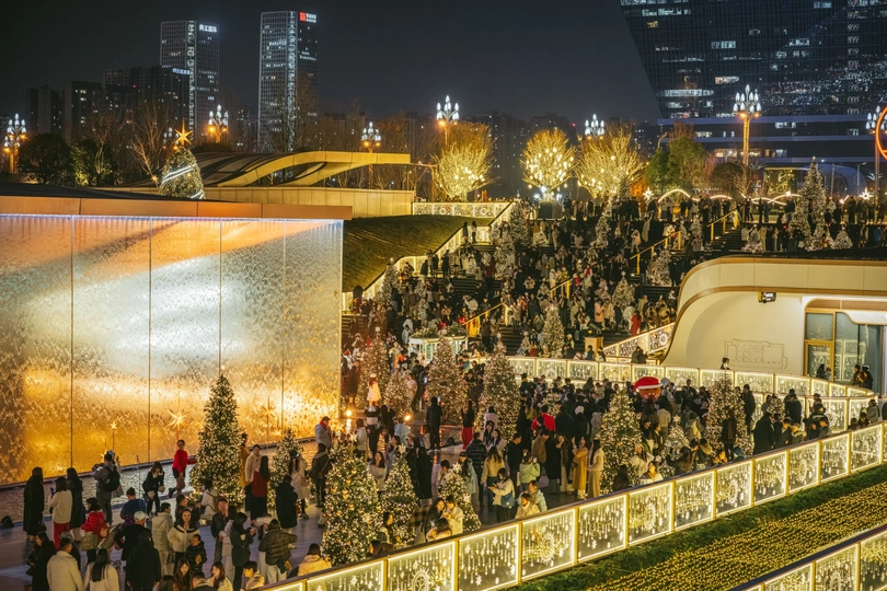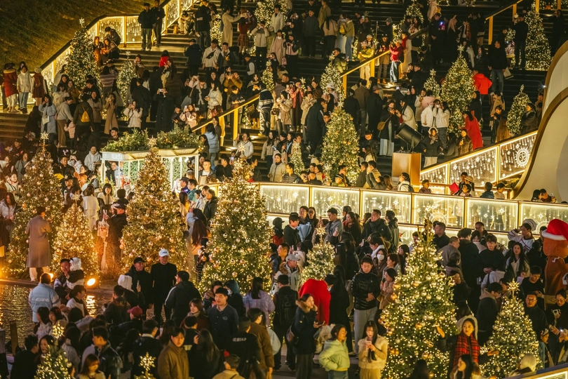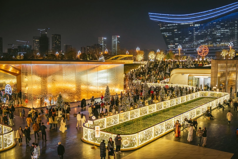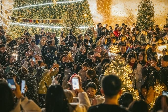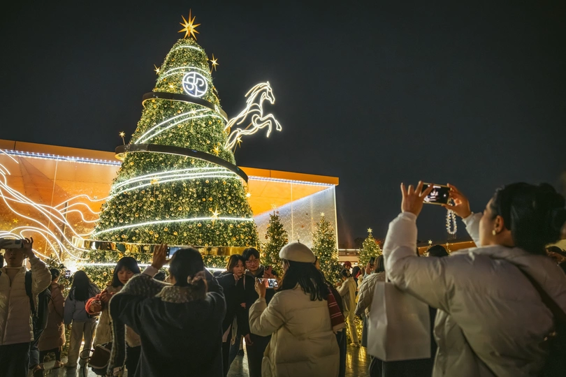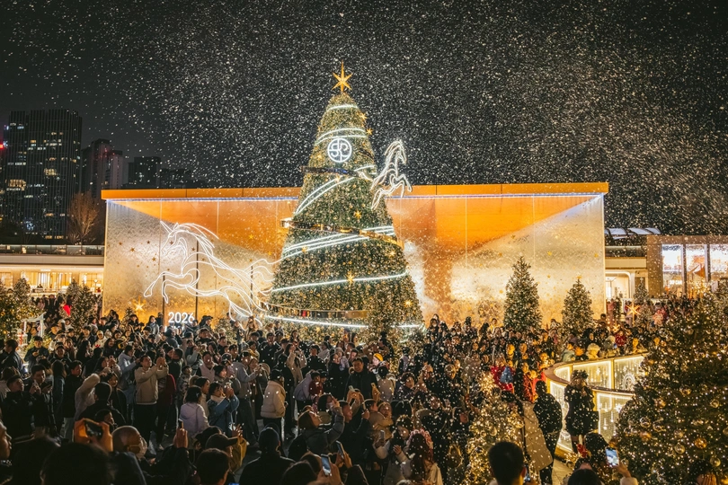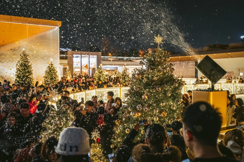 2025年12月25日,SKP以120棵圣诞树点亮冬夜,人造雪纷纷扬扬,中庭化作银白梦境,与圣诞树合影,笑声与雪花一起落进这个夜晚。