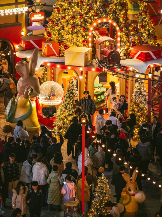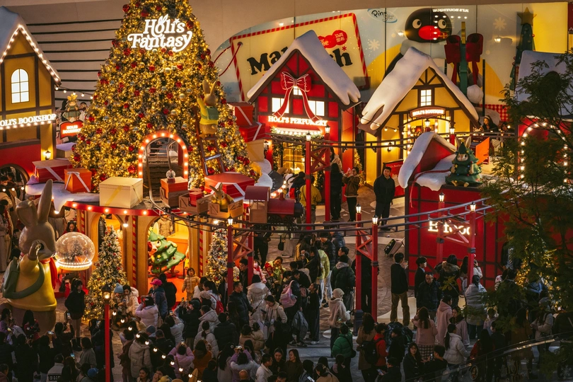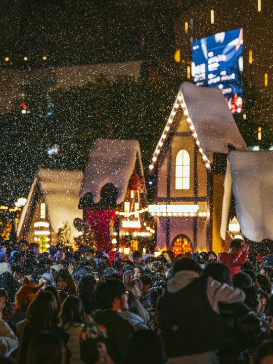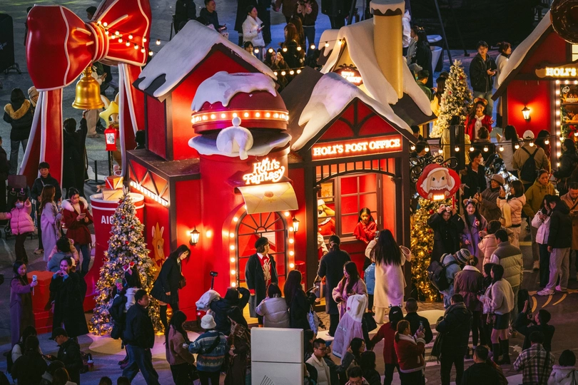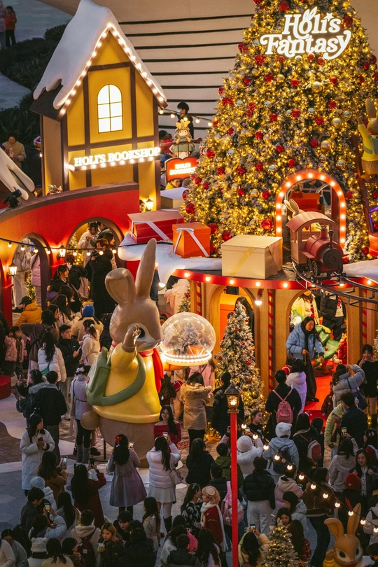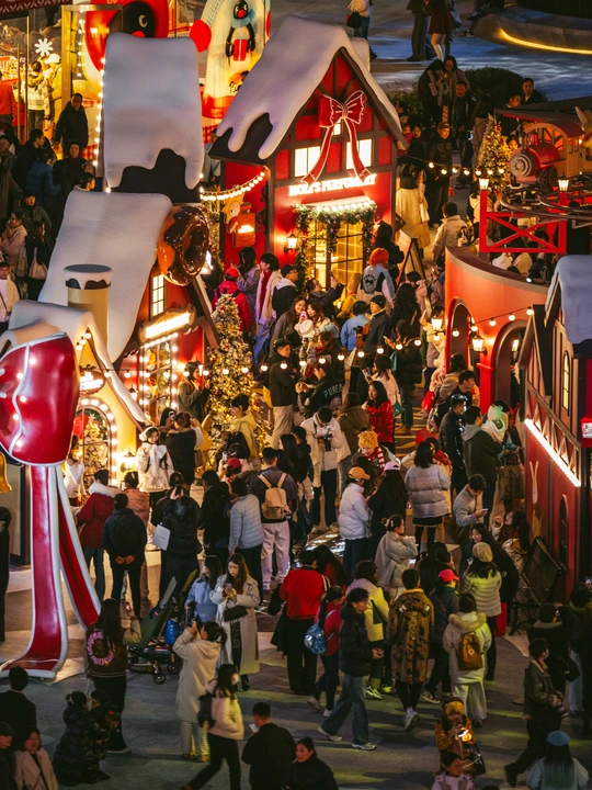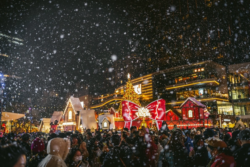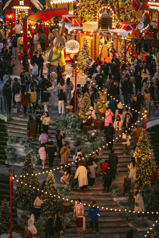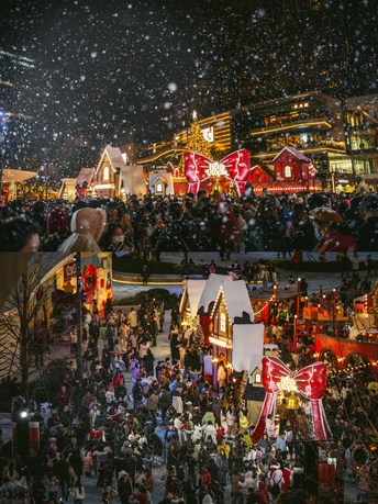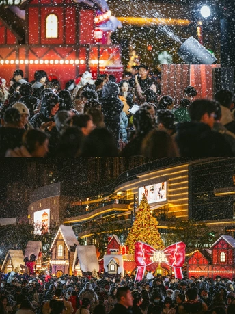 2025年12月24日,成都万象城商场化身北欧童话世界,成为市民打卡的热门地点。中心广场上设置了超大星愿树、雪国列车和巨型Holi兔等主题艺术装置,吸引了众多游客拍照互动。当晚19点至22点,广场上每半小时上演一场持续10分钟的人工飘雪,雪花在灯光映照下缓缓飘落,为这座南方城市营造出难得的冬日浪漫氛围。此次活动将持续至2026年1月31日,为整个跨年假期增添节日气氛。