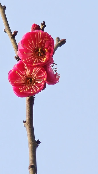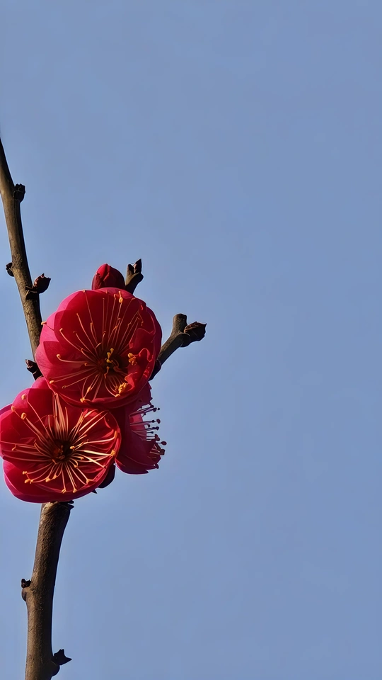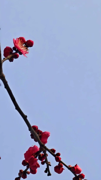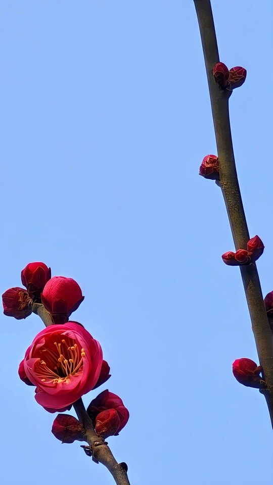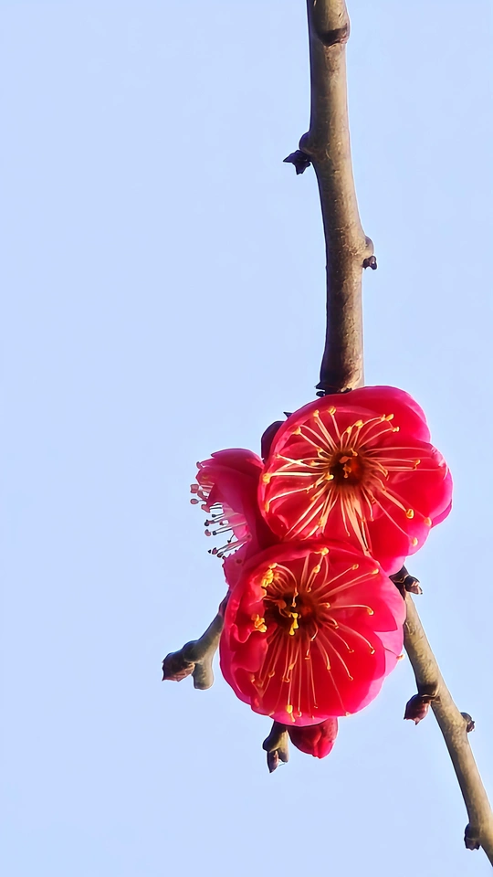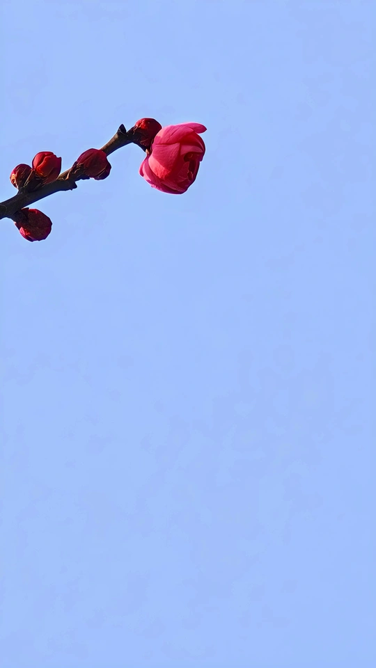 朱砂梅,三大名梅之一。它高洁傲骨,花色鲜红,为寒冬增添了一抹最动人的暖色!