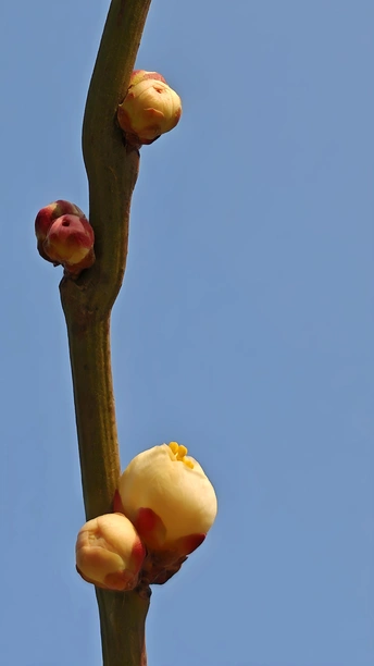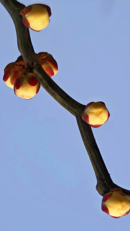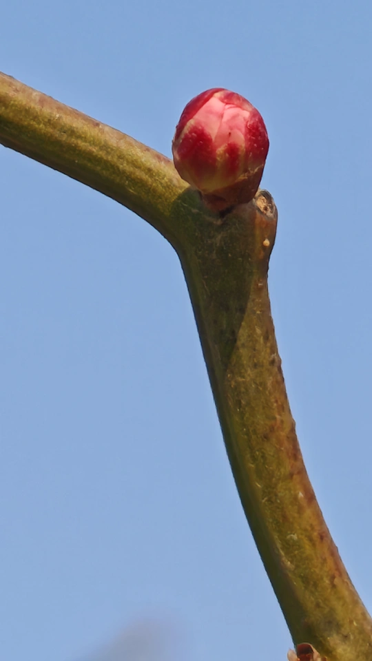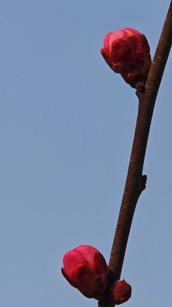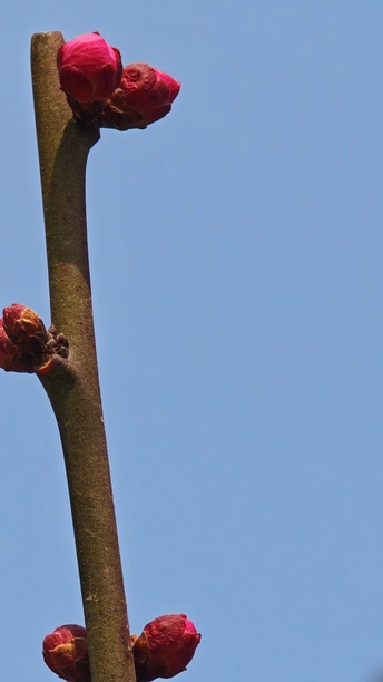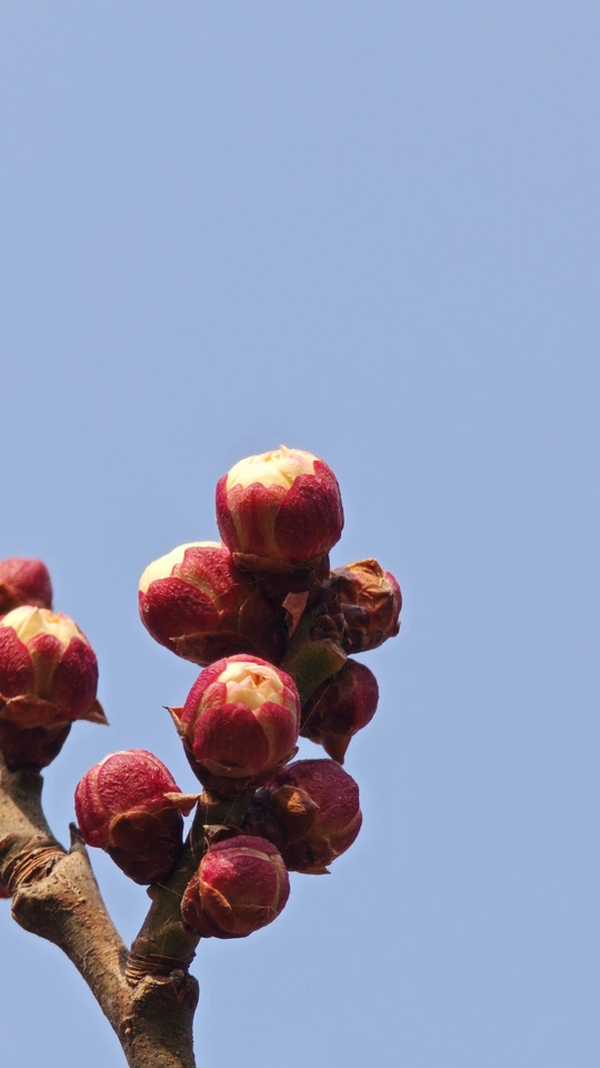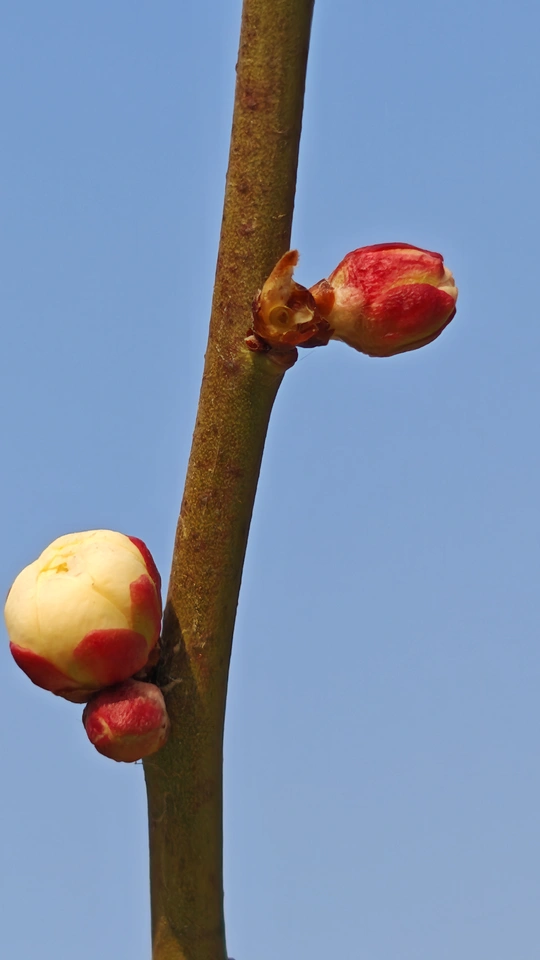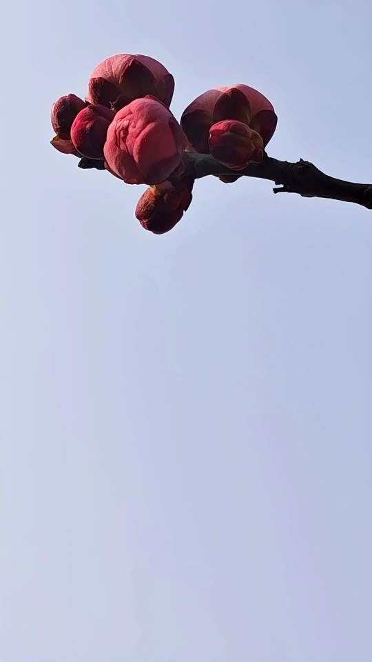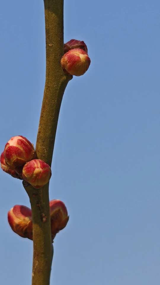 这些梅花的小花苞小巧玲珑,傲娇春色,紧紧簇拥在枝头,形态犹如羞涩的少女,在微风中轻轻摇曳。它们是冬天最后的秘密,也是春天最初的宣言!