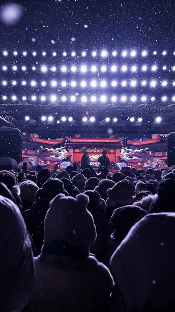 这是一张手机原图直出作品。 在雪乡蹦迪现场,那天飘着雪花,上万人聚集在一起,主持人在主席台演说,看到这么多人在逆光下,头部的轮廓特别清晰,赶快拿出手机抓拍了这一刻。 @米拍 @米拍社长 @米拍小助手 @米拍编少
