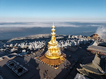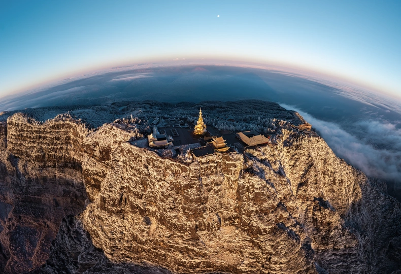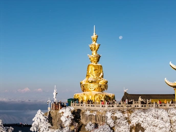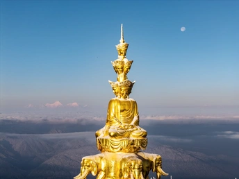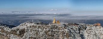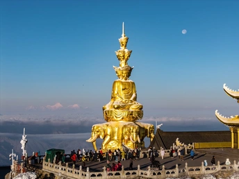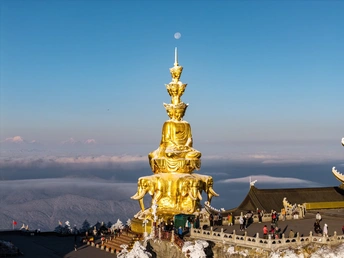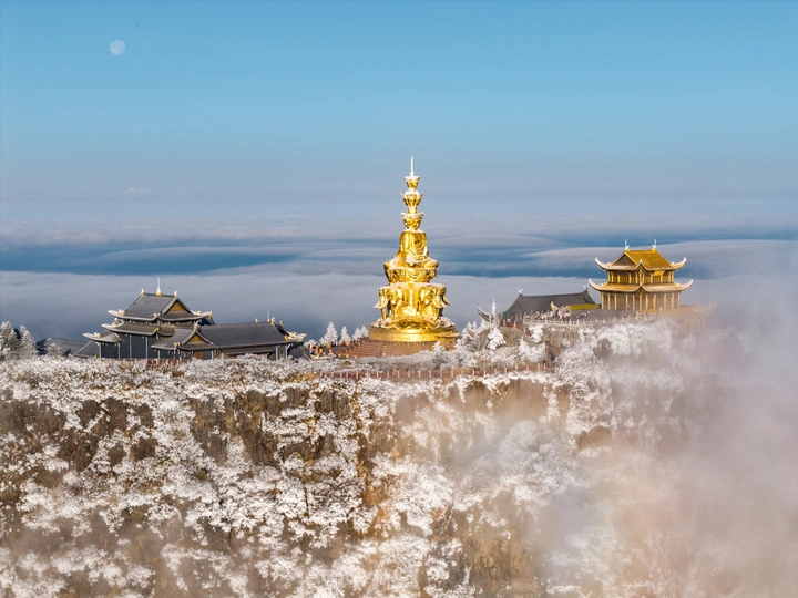 峨眉山金顶、贡嘎与月亮同框出现的壮丽景观