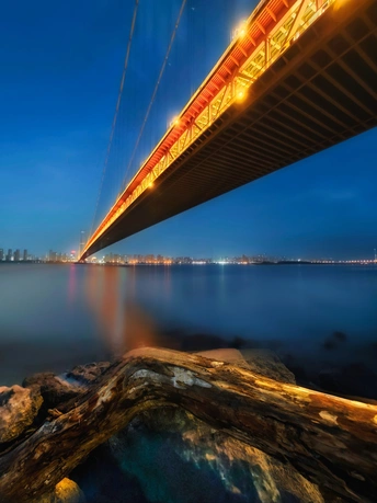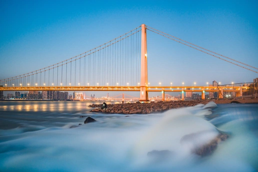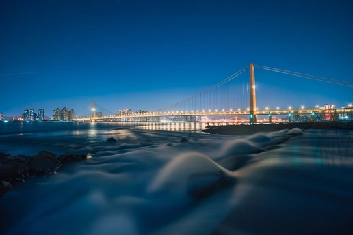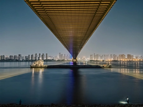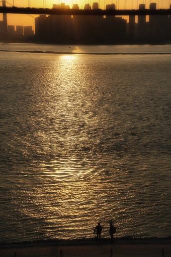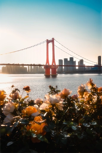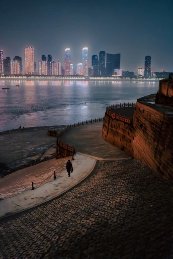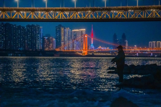 记录下江滩的光影变化,从橘子味的落日余晖,转瞬即逝的蓝调,到长江大桥的灯光亮起,再到江面波光揉碎了城市霓虹