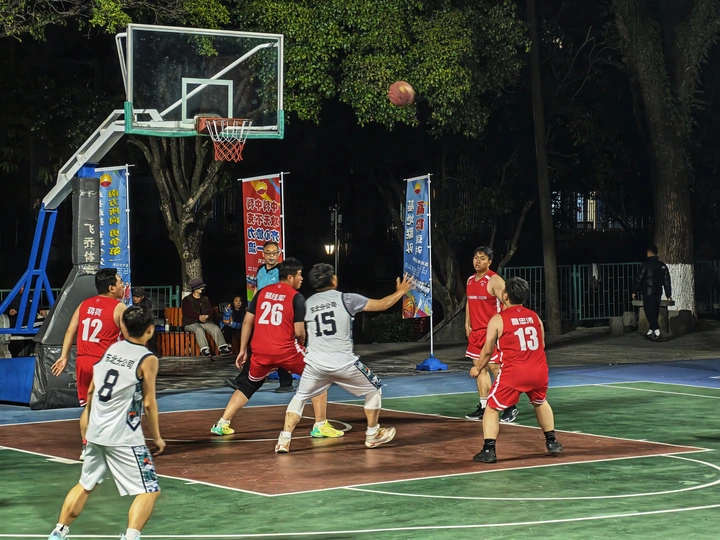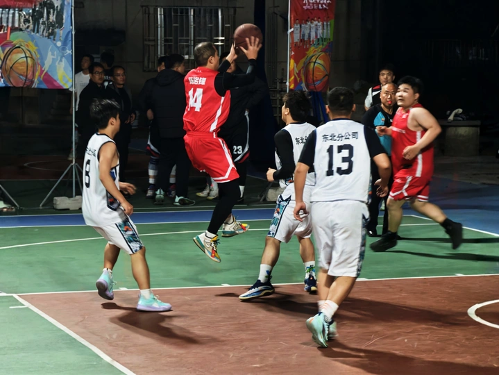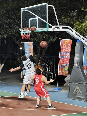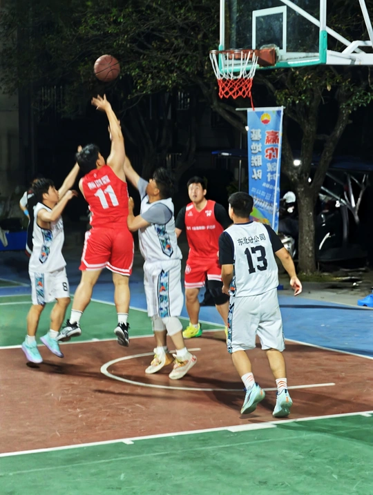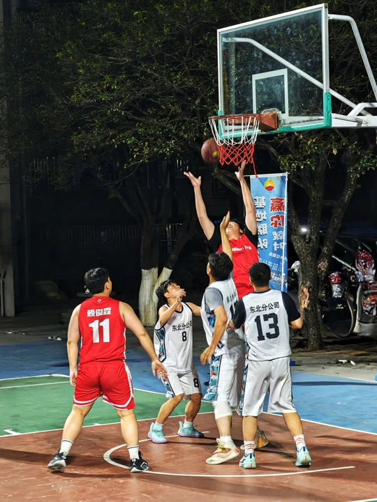 这组九宫格画面定格了年度职工篮球赛的热血瞬间,从开场的跃起重磅争球,到赛中球员们抬手投篮、突破上篮、全力扣篮的精彩攻筐,再到围堵防守、多人拼抢篮板的激烈对抗,还有红队球员空中接力的默契配合、带球极速突破的迅猛攻势,每一个镜头都展现出职工球员们的竞技热情与拼搏劲头,攻防博弈间尽显团队协作的魅力,也让这场年度体育赛事的活力与激情跃然眼前。
