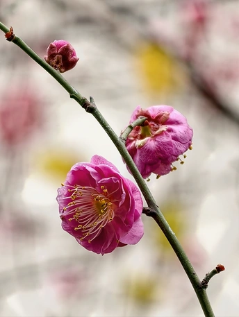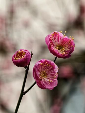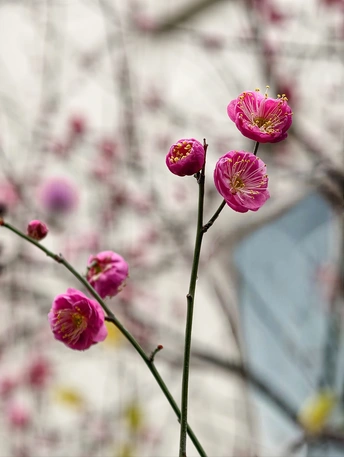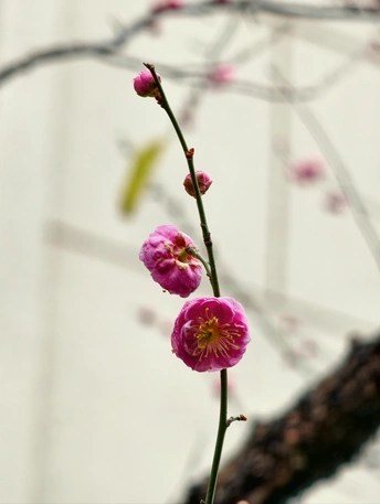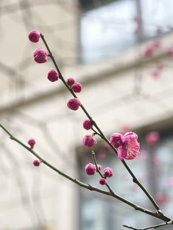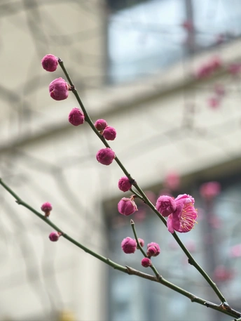 小区早梅拍摄教程|500字内拍出江南氛围感 杭州暖冬早梅绽放,家门口的花坛就是绝佳取景地,掌握4个核心技巧,轻松拍出质感大片。 一、构图:简洁突出韵味 采用三分法将主体放在交点,或用枝干交错做框架式构图,增加层次;斜向花枝用对角线构图打破呆板,拍摄时适当留白,避开小区杂物,凸显梅花清雅。 二、光线:巧用自然光 午后柔光最佳,侧光/逆光勾勒花瓣纹理、泛起光晕;逆光可拍出花瓣通透感,阴天用散射光拍干净色调,避开正午顶光,避免色彩失真和生硬阴影。 三、主题表达:抓细节传意境 优先选含苞、半开或带露珠的花朵,传递不同情绪;融入小区石凳、围墙等元素,体现“家门口早梅”主题;用特写聚焦花蕊、花瓣纹理,增强故事感。 四、景深控制:虚实营造氛围 大光圈(f/2.8 - f/5.6)虚化背景,突出主体;长焦镜头压缩空间,让花枝更紧凑;拍整株梅树用小光圈(f/8 - f/11),保证整体清晰。