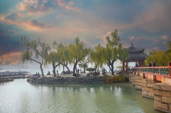 穿堂过巷,与北京的古建筑撞个满怀。故宫红墙黄瓦巍峨矗立,飞檐翘角驮着千载风云;天坛祈年殿鎏金宝顶刺破苍穹,回音壁里藏着古人的巧思。 胡同深处,青砖灰瓦的四合院错落有致,门墩上的纹路刻满岁月痕迹。雍和宫的檀香袅袅,钟楼鼓楼的钟声悠悠回荡,每一处雕梁画栋,皆是历史的注脚,在时光里静静诉说京城往事。