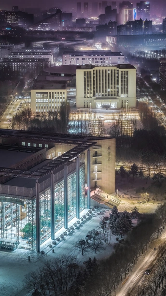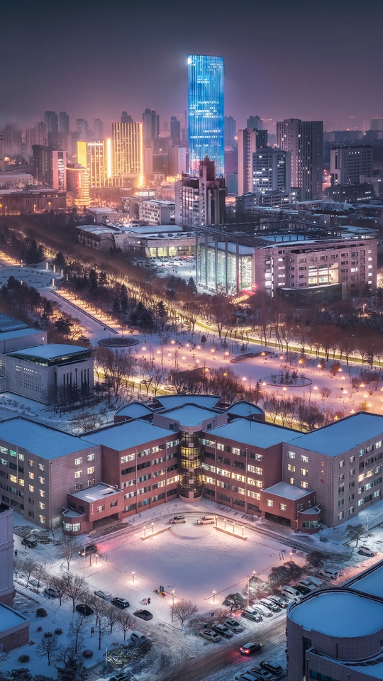 关于冬天的记忆,总是被大雪覆盖的校园占满。 当蓝调时刻降临,教学楼的暖灯与窗外的冰蓝撞个满怀。 我们在雪地里留下的脚印或许会被覆盖, 但这瞬间的静谧与心动,已被快门永久定格。