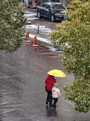 当一个摄影师刚好遇到这一幕 该是多幸运 南通初雪,刚好遇上大寒节气 晨起来到窗前,一回头,刚好她们路过,刚好手拉手,有刚好举着一把鲜艳的伞…… 赶紧掏出手机拍了下来 温馨的一幕由此定格…… 她们是幸福的,我也是!!! @米拍影像创作营 @米拍社长