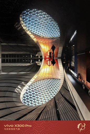 在大兴机场,偶遇建筑的科幻感角落,镜面折射出无限循环的几何美学,流动的光韵勾勒出未来通道的模样,按下快门的瞬间,仿佛踏入了时空褶皱里的奇幻世界~~