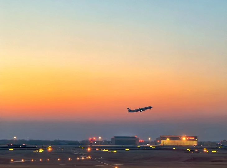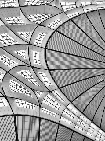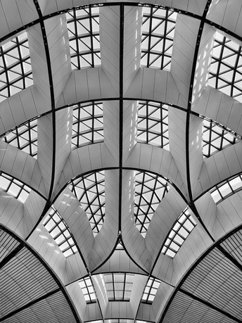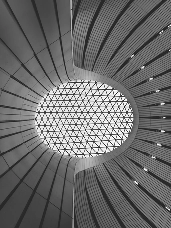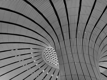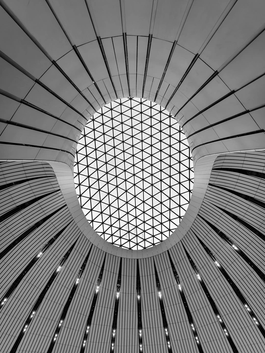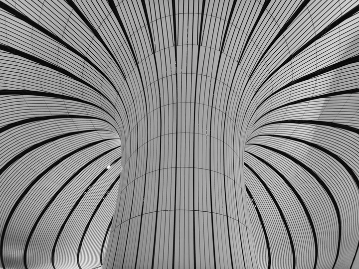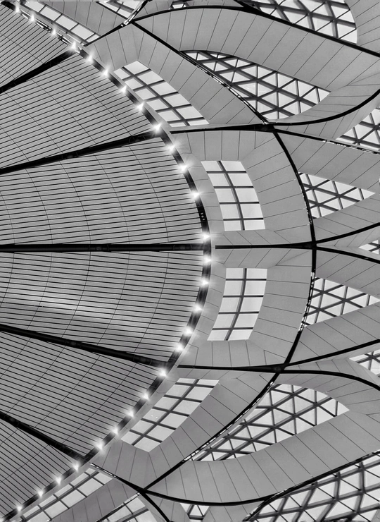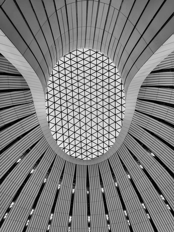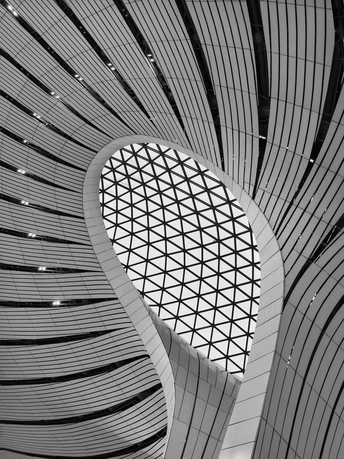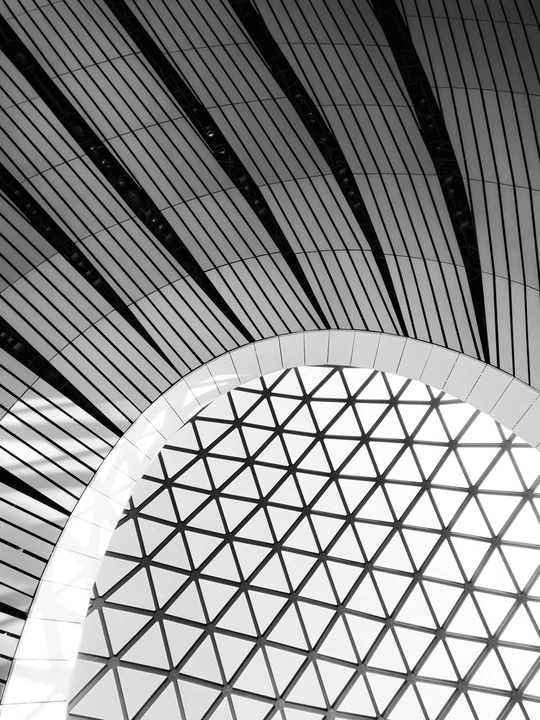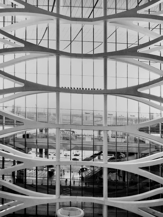 在大兴机场,用镜头读一首扎哈写的建筑诗。 剥离冗余色彩,让线条的韵律、光影的叙事、几何的秩序全然显现,每一寸结构都是建筑的骨骼与鲜活呼吸。 一场关于未来感的视觉漫游,终在晚霞漫染穹顶时抵达高潮。 当飞机划破暮色奔赴远方,建筑的冷峻诗意与人间的滚烫梦想撞个满怀,这便是最动人的共鸣。