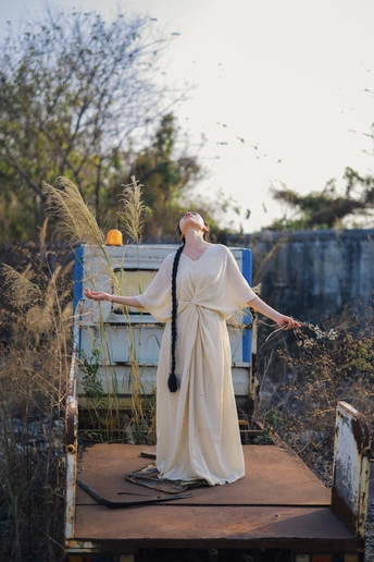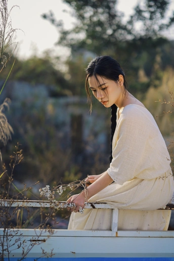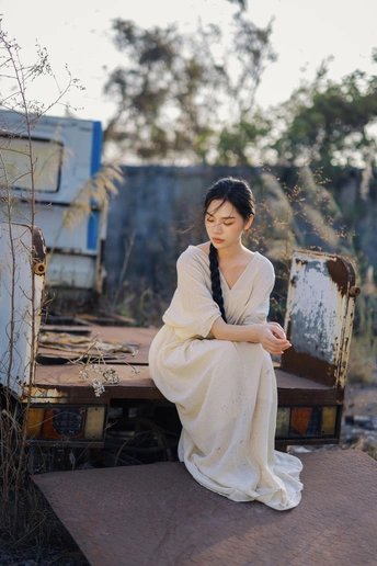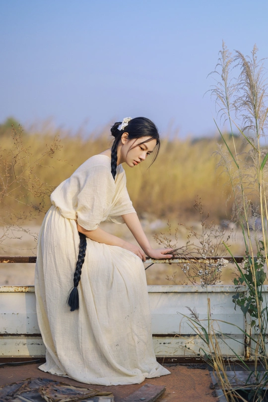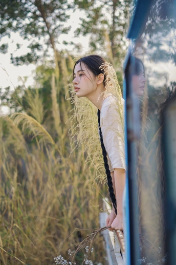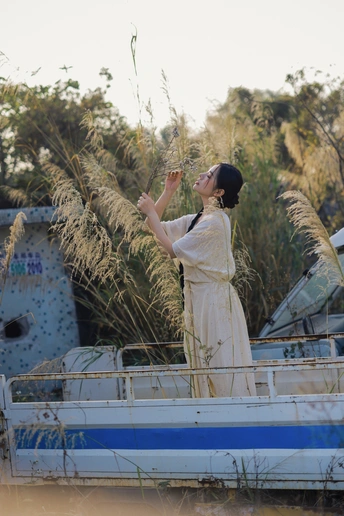 旧车停在荒草深处,风裹着野芒的绒絮漫过白裙。我在无人问津的荒途上,接住了这阵不期而遇的风,也接住了一整个松弛的黄昏。