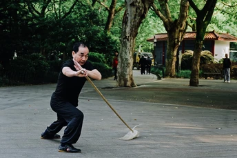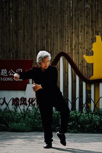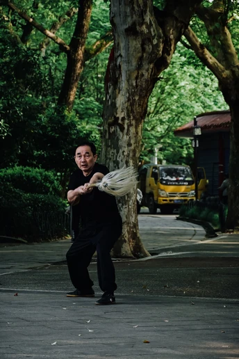 在公园,会遇见一棵大树,一丛鲜花,还有那些头上盛开着斑白华发的老人。观察记录他们的生活,那些久久生根在心中的焦虑消散了,我得到了久违的平静。 大爷手中长枪的穗子在空中划出弧线,挑开凝滞的空气,一招一式,与风、与影、与自身的重量达成和解。动作的起落,是另一种呼吸,将嘈杂推远,只留下专注本身。 棋盘上,棋子列阵。手在上方停留,落下或不落,都是决定。时间在这里折叠,胜负是表面的涟漪,更深处是智力的流水,无声穿行。小狗被绳子牵引,它的路线是随机的,人的脚步便也生出一种温和的顺从。 银行玻璃映出整理纸箱的蓝色身影,动作细致,如同打理一小片私人疆域。从水面到陆地,从挥洒到静立,动与静之间,并无真正的边界。公园收容这一切,像一处宽阔的屋檐,让所有时光——无论是凝滞的还是流淌的,都能找到各自的位置,安然停泊。 水承载着色彩鲜艳的船只,也承载着缓慢的下午。