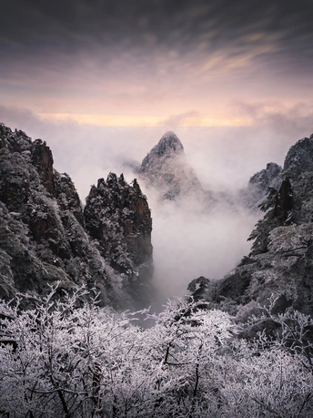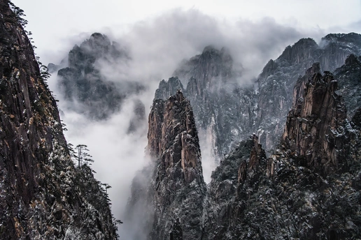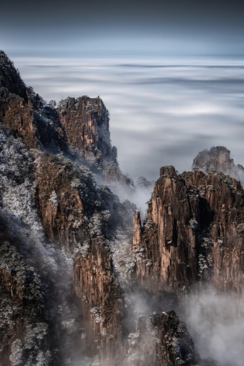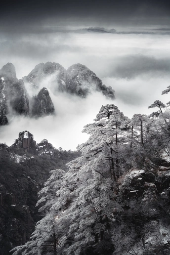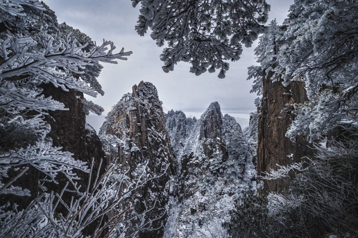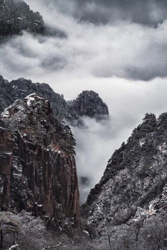 考完试打算去放松一下,恰巧发现有寒潮降温,果断打算去黄山拍雾凇。南方的雾凇因为水汽丰富,往往比北方的相对要壮观一些,但是来的快去的也快,往往一场大雪之后出太阳便开始化水,窗口时间很短。跟朋友提前到达黄山脚下时还没开始降温,一夜过去,屋顶蒙上一层浅浅的白,因此果断上山。山上风很大,背着装备走山路还是比较有挑战的,尤其雪一直在下小路往往积雪比较深,更加加重了行走的困难,衣服很快就会汗湿。顶着风雪在走了一天,得到了这些照片。第二天早上天气豁然开朗,扫去阴霾能够看见层次分明的云海景观,时至正午,一些向阳处的雪已经化去大半,雾凇已经不见踪影。此时被网络带火后有大量游客上山,很多位置不再纯净,由于前一天已经拍到了一些想要的画面,对成本进行计算后我们决定避开人流下山,结束这次拍摄,将遗憾留到未来,继续旅程。我们是幸运的,回看相机里的照片,一切都是值得。