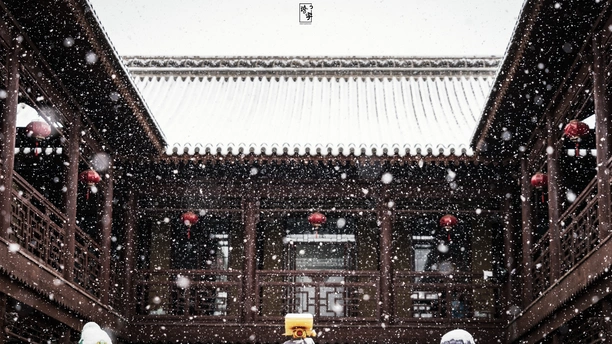天水古城位于甘肃省天水市秦州区,是一座明清建筑群落。一场大雪落在古城内,让这座拥有2700年建城史的小城瞬间白了头,更是游子们思乡的时节。