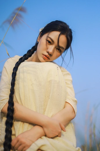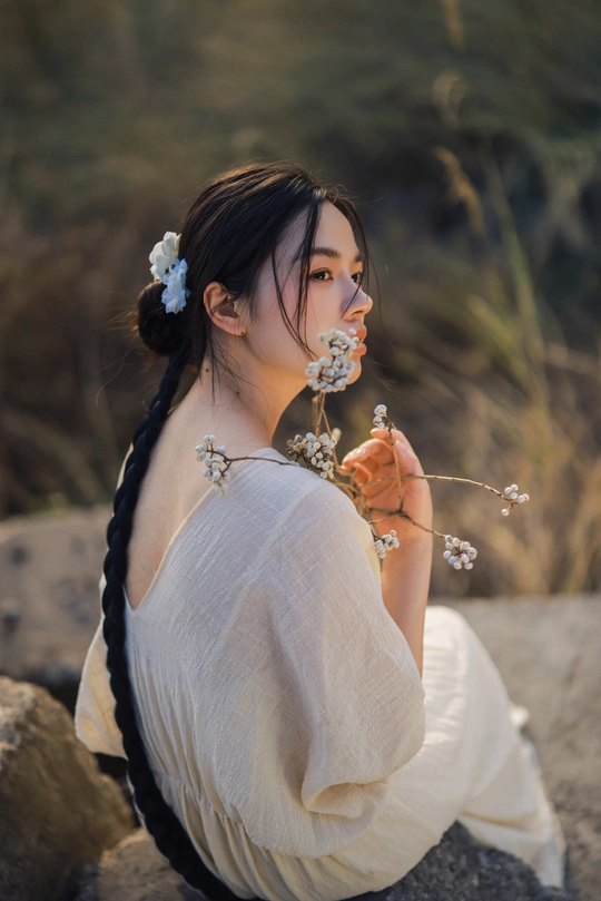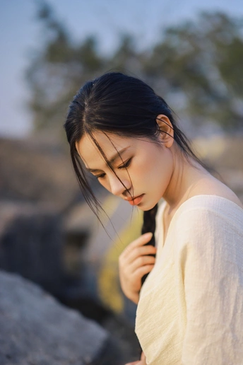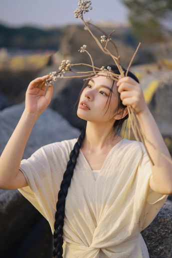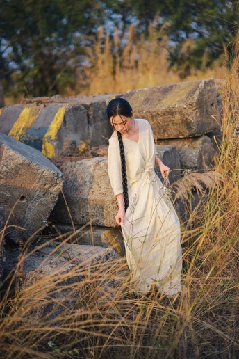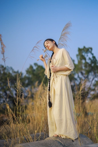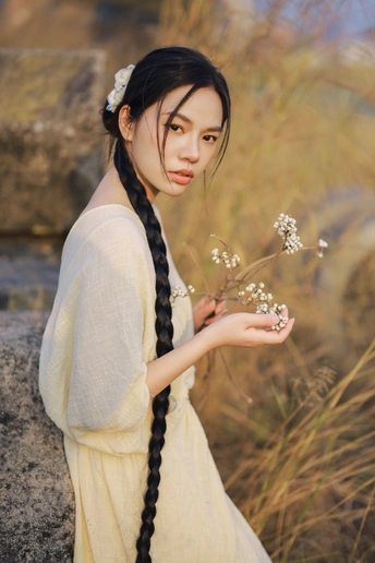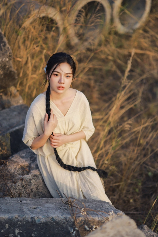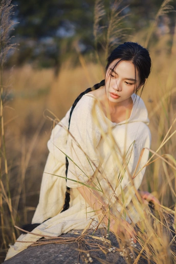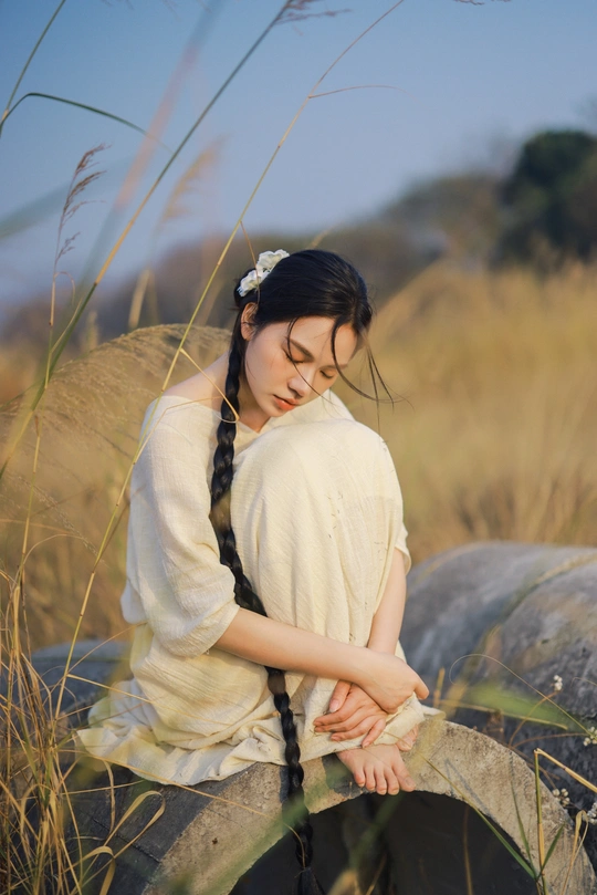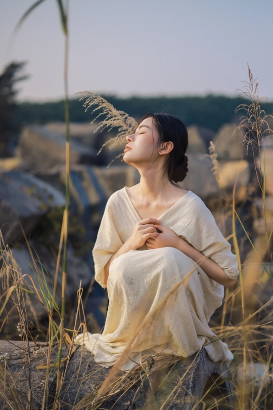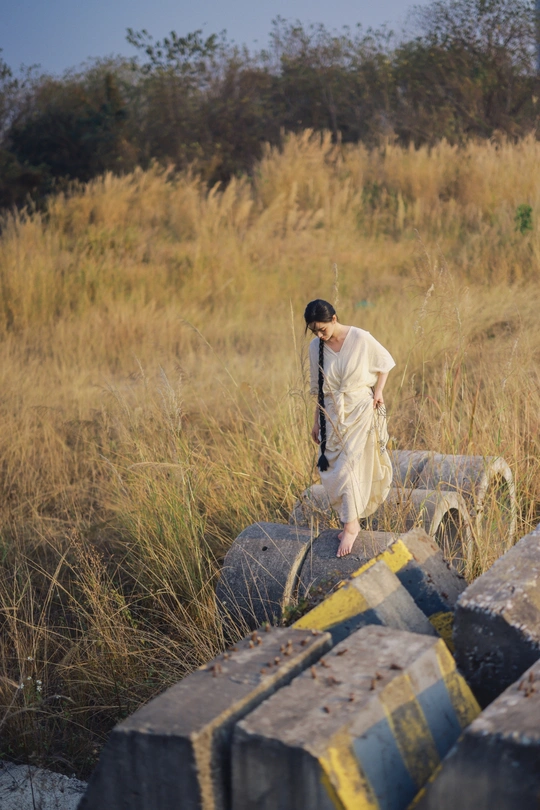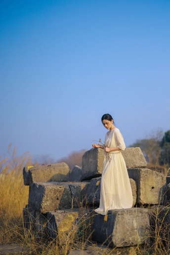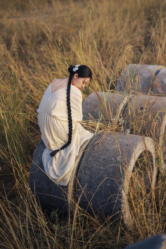 荒草漫过旧石,白裙接住晚风。 在野地的粗粝里,揉进一点松弛的温柔。