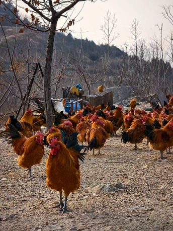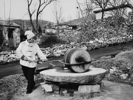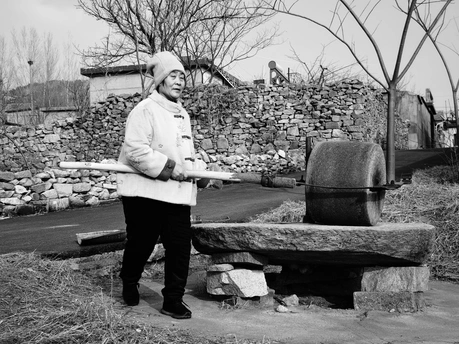 作品拍摄于山东省泗水县龙门山,在龙门山上,有一个村庄叫龙门山村,村中仍然保留了远古的特色,石房子、石墙处处可见。我们正在村中行走,看到一位老妇正用石碾碾调料品,非常可亲可念,还有山中的跑鸡、冰湖、非常自然美丽的场景,随即记录了这些瞬间。 龙门山位于泗水县城西北16公里、泗水与宁阳两县交界处,总面积4.2平方公里。主峰珂嵝埠海拔568米,为泗水县第二高峰。山体呈C型蜿蜒,九条山脊构成‘九龙戏珠’之势,属国家AA级旅游景区。景区以自然景观著称,拥有赤龙潭、将军石、鸡冠山、故事井、未来香等奇观,夏季‘龙门灵雾’现祥云气象。山南麓灵光寺始建于东汉永平三年,金皇统二年重修,现存观音堂及明清碑刻。寺院北靠龙门山,南临赤龙潭,东接秀灵台与王母仙山相连,西望白龙盘旋凤凰山。人文遗迹包含明代邹平王墓(今龙门山庄)及1993年发现的明辅国将军墓,出土金饰、七星古剑等文物,景区融入泗水乡村旅游‘四小龙’格局,开发有农旅项目。