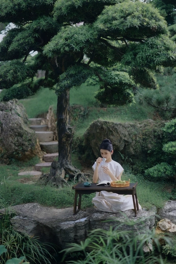 藏于园林深处,以石为榻,以书为枕,借半卷东坡诗,偷得浮生半日闲。