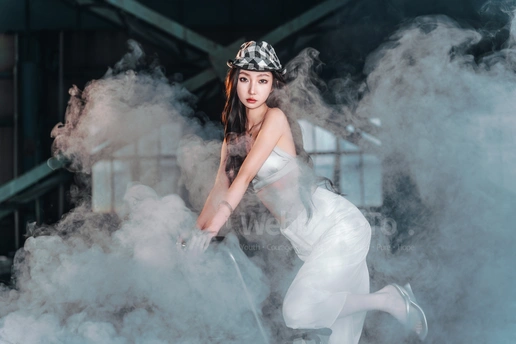 烟雾漫过裙摆,工业风的背景里,是被定格的青春。清冷感是保护色,自由才是底色。