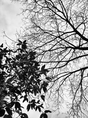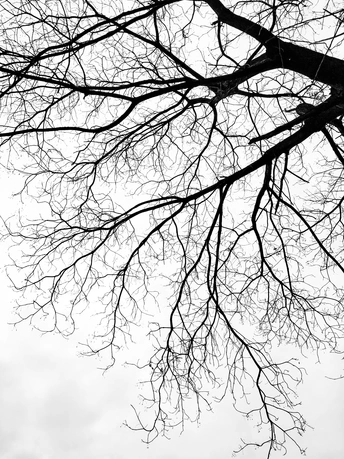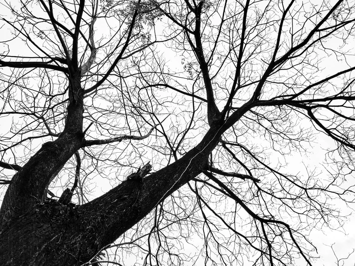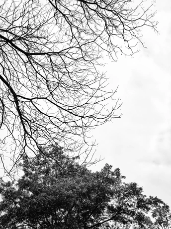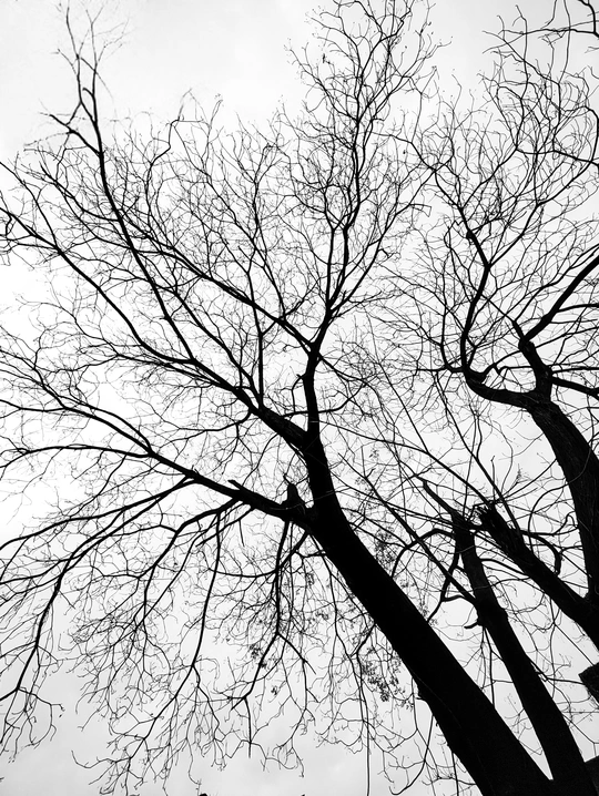 冬日光秃的枝桠,在天空这张素纸上,织就成最利落的线条诗。 黑白滤镜滤去了多余色彩,只留下纯粹的轮廓与交错的脉络,像城市肌理的剪影,也像藏在季节缝隙里的沉默语言。 风穿过时,它们便轻轻摇晃,在天地间续写着关于生长与等待的故事。
