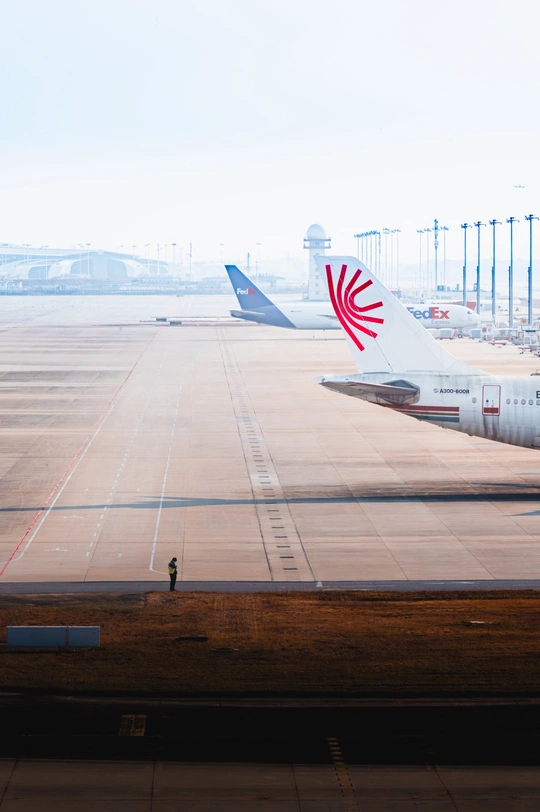 听说广州白云机场有个藏在郊外的机位,必须靠徒步才能抵达,周末便揣着相机出发。脚下是被枯草覆盖的土路,风卷着细沙擦过耳际,走了近一小时,鞋底沾着泥点,额角的汗也浸进衣领。好几次想折返,却想起那句“独特的视角,总得自己用脚步丈量”,咬着牙又往前挪了几百米。 终于登上小坡的瞬间,眼前的景象让所有疲惫都落了地:停机坪上,FedEx的机队整齐排列,深蓝色尾翼在浅灰的天光里连成一片;红白相间的飞机尾翼像振翅的红鸢,静卧在宽阔的跑道旁;远处的塔台与航站楼轮廓分明,和平时在候机厅里看到的模样全然不同。更惊喜的是,恰好有客机从头顶掠过,朋友举着手机定格画面,我们的身影在蓝天与机翼下成了剪影。 原来所谓“独特”,从不是唾手可得的风景。就像这座永远向前的广州城,所有鲜活的视角都藏在“再走一步”的坚持里。那些徒步时的喘息与犹豫,最终都成了眼前风景的注脚——你愿意为风景走多远,风景就会为你亮多久。当镜头对准滑行的飞机,我忽然明白:最好的机位从不在导航里,而在你愿意坚持走下去的路上。
