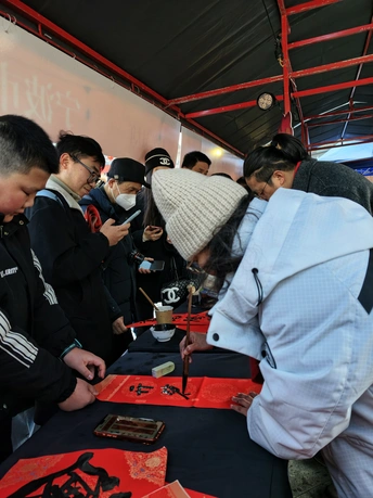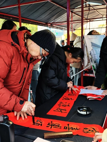 红纸为媒,笔墨传情。 宁波市书法家协会的老师们走上街头,开展“免费为市民写春联”公益活动。 不图名利,只为把新春的第一份祝福,亲手送到市民手中。 围观的人群裹着冬衣,在热闹的烟火气里,接住这一份手写的年味。 传统与笔墨,在街头与新春相遇,这便是最踏实、最温暖的中国年。