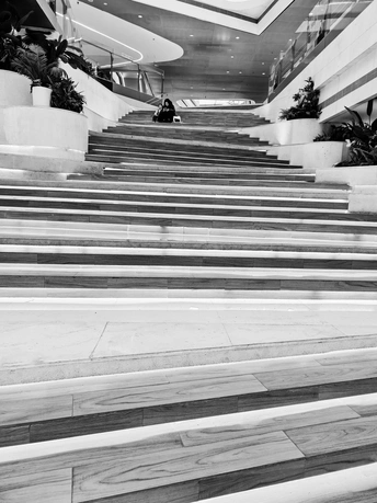 层层台阶像一本摊开的书,每一级都写着匆忙的脚步。而你们,是这页纸上,唯一安静的标点。