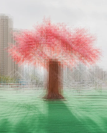 游乐园,梦幻炫目的樱花秋千。