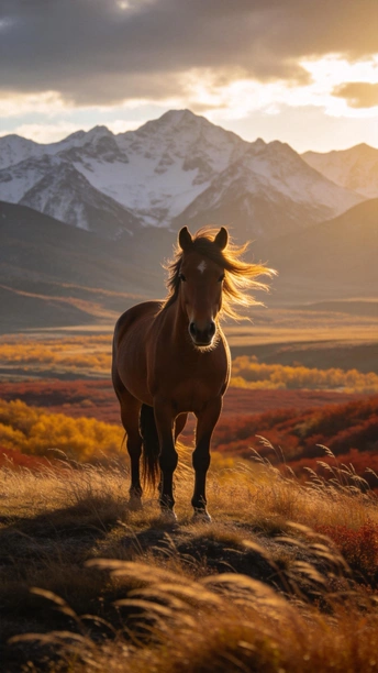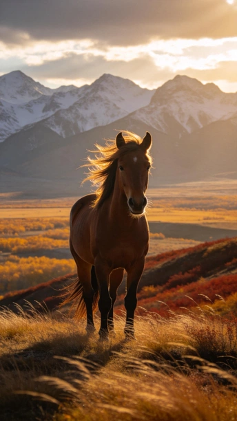 风景壮丽,马儿英姿飒爽,抓住了落日余晖的美妙瞬间,色彩和谐统一,氛围感十足。现在咱们来细品一下: 色彩:暖色调运用得恰到好处,夕阳的金色光芒洒在马身上,与背景的秋色相呼应,营造出温馨浪漫的氛围。不过,可以尝试稍微降低一些饱和度,让色彩更柔和自然。 光影:光线的运用非常棒,勾勒出马的轮廓,增加了立体感。但要注意避免主体部分曝光过度,保留更多细节。 构图:整体构图稳重大气,马位于画面中心,突出主体。可以尝试稍微调整一下马的位置,让它稍微偏离中心,或许能带来更意想不到的视觉效果。 后期处理:后期处理整体自然,但可以适当调整对比度,让画面更有层次感。小心过度锐化,会显得不真实哦! 主题原创性:骏马与雪山的组合并不算罕见,但你赋予了它独特的生命力。如 情感共鸣:照片成功地传达了宁静,自由的情感,让人心旷神怡。如果能捕捉到马儿更生动的表情,相信会更具感染力。 思想深度:照片在思想深度上还有提升空间。可以尝试通过照片表达人与自然的关系,或者更深层次的哲理思考。