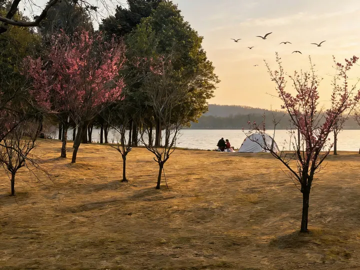 大年初一的风,带着浅淡的寒意,拂过兴隆湖的水面。 薄雾如纱,将远处的楼宇晕染成水墨轮廓,长桥卧波,牵着游人的脚步,也牵着一湖的沉静。 有人在树下静立,看水鸟掠过泛起的涟漪;有人在岸边围坐,把家常的笑声揉进风里;还有人支起帐篷,在初绽的梅香里,与新岁温柔相拥。 这不是喧嚣的热闹,是属于成都的松弛与清欢—— 在湖光里,在草木间,在家人相伴的细碎时光里, 马年的第一缕春意,正悄悄漫过心头。