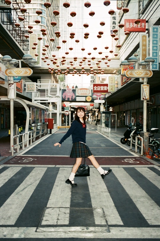 胶片下的港风街区,活力少女
