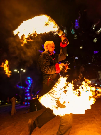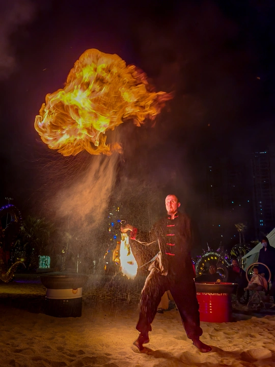 夜幕为幕,赤焰为笔。舞者挥动火轮,在丙午马年的夜色里旋出金色涡旋。每一道炽烈的轨迹,都是滚烫的诗行。这一瞬定格的,不仅是火舞的张力,更是人间最热烈的年味与祈愿。