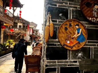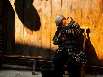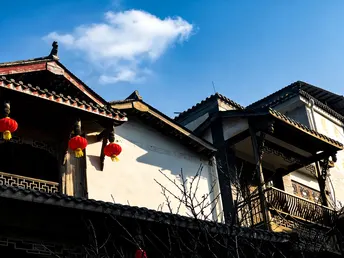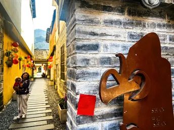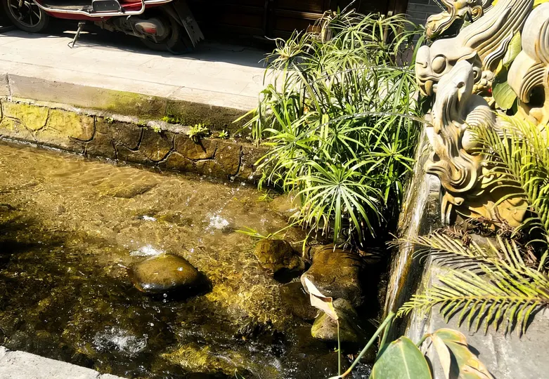 青灰的砖墙,蜿蜒的石板路,红灯笼在檐角轻轻摇晃。 溪水从石雕的兽口中潺潺流出,把古镇的日子洗得清亮。 老人们在藤椅上打盹,阳光把他们的影子拉得很长; 巷子里,有人提着菜篮走过,脚步声轻叩着岁月的回响。 这里没有喧嚣,只有风穿过木窗的轻响, 和一杯热茶里,慢慢舒展的时光。 在海窝子,每一步都是旧时光的回响, 每一眼,都是岁月温柔的模样。