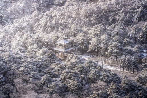 岁寒腊月,黄山披素裹之裳。万树琼枝似玉琢,千峰素影若云裁。古亭静峙于雪海中央,飞檐承霜,恍若谪仙遗落的墨砚。晨光破雾,金缕穿林,雪粒簌簌如松涛低语。此景一瞬,天地为笺,霜雪为笔,亭台作砚,将千载清寂写入永恒。风过处,冰晶坠落如碎玉,松影摇曳似古琴,恍觉庄周梦蝶,不知是山入我梦,抑或我入山境。雪后初霁,万籁俱寂,唯余古亭与松涛共守这片琉璃世界,恰似千年文脉在冰晶中悄然苏醒。