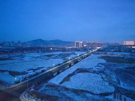 蓝调时刻的双鸭山,像被时光按下了慢放键。 公路的灯串牵着晚风,雪地里还留着去年的稻茬,远处的冷却塔和高楼,是我刻在骨子里的坐标。 从高空俯瞰,承平湖的轮廓温柔,远山的剪影熟悉。 这不是远方,是我出发又归来的地方——东北老家,我的双鸭山。 回家过年,最暖的风景,永远是故乡的方向。