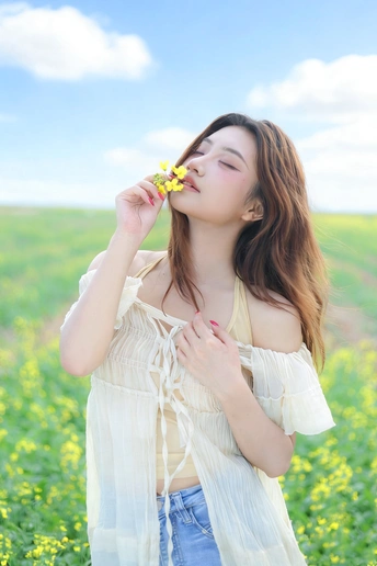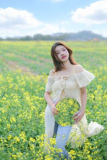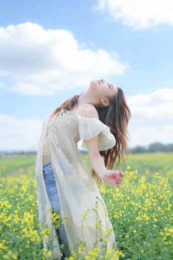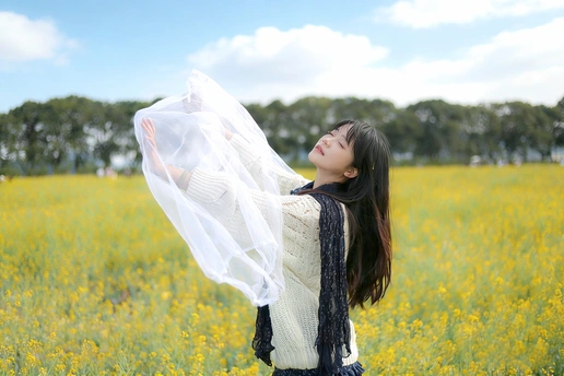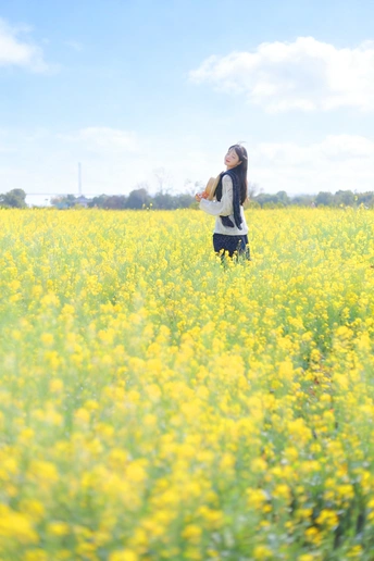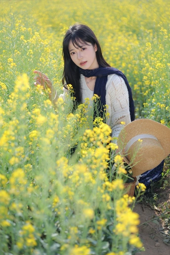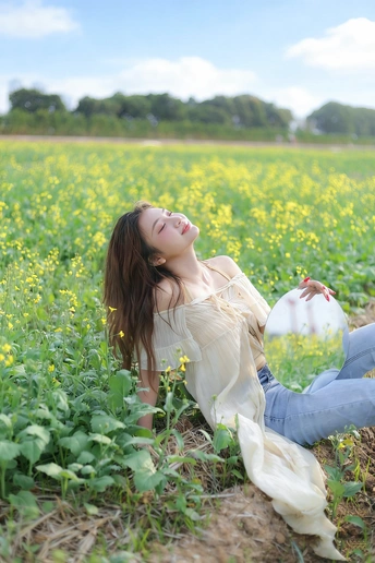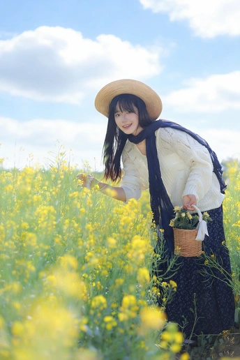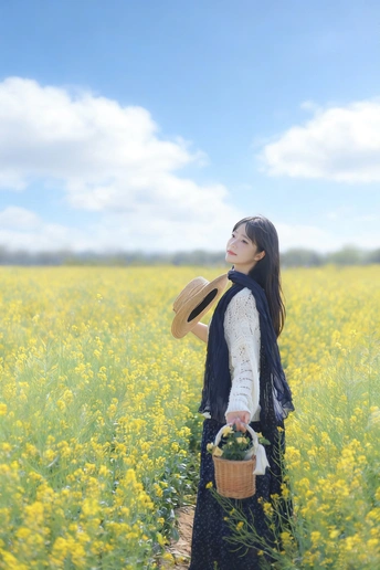 风掠过发梢,把春天的味道揉进呼吸里。 草帽、花篮,还有漫野的油菜花, 都在告诉我,这是属于松弛与自由的季节。