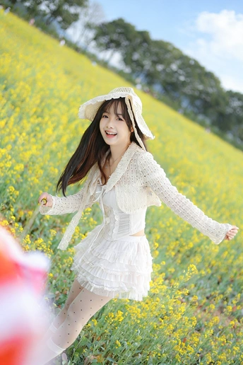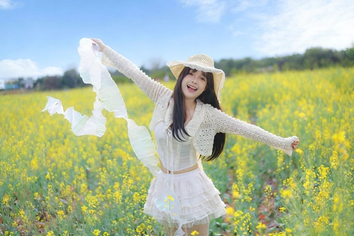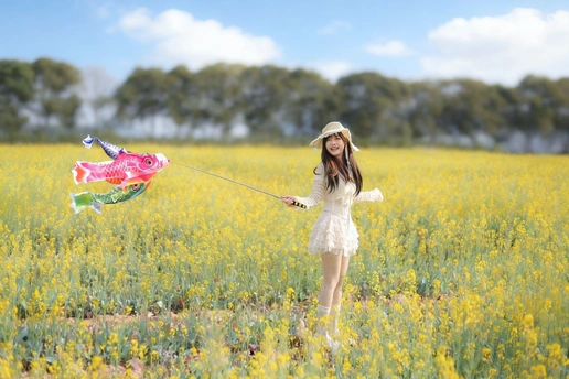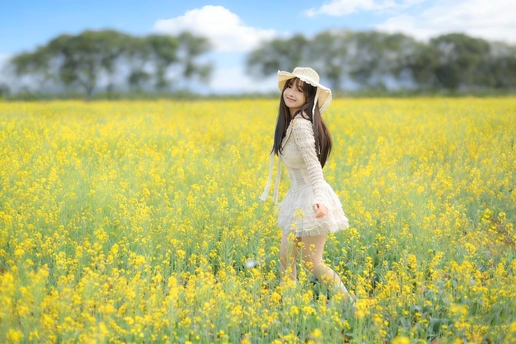 奔向漫野的油菜花, 让风扬起裙摆,让阳光吻过脸颊, 在这片温柔的花海里,做回最自由的自己。