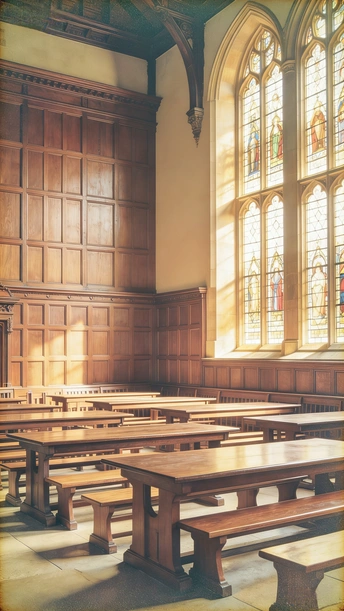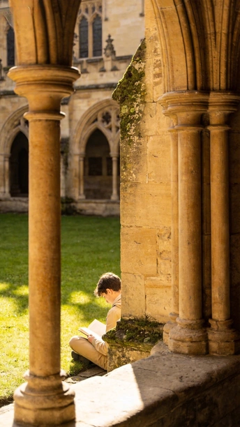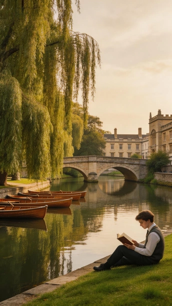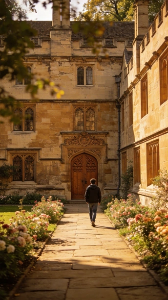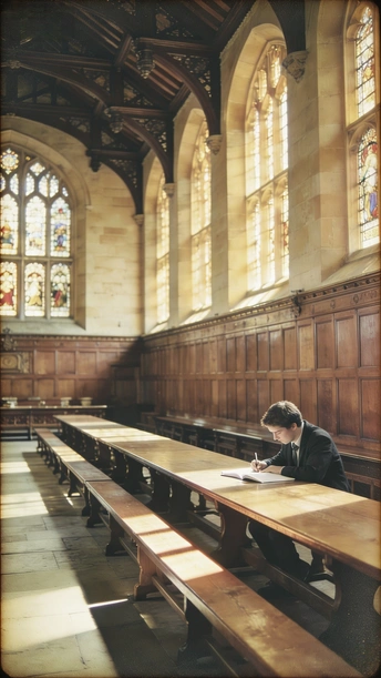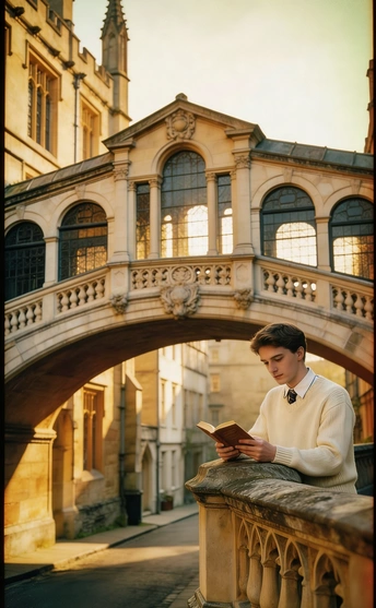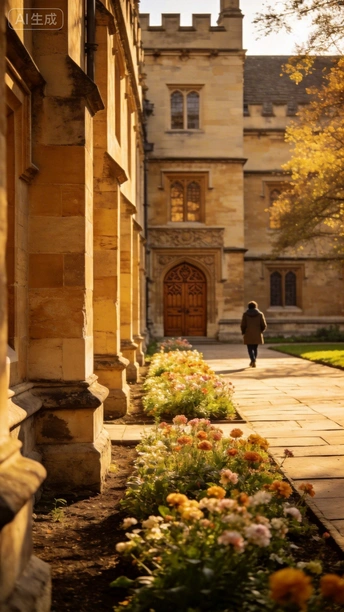暖调漫光漫过百年石墙,少年身影穿行于时光之间, 安静、克制、有尊严,是学院的永恒诗意。
