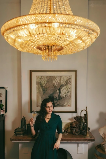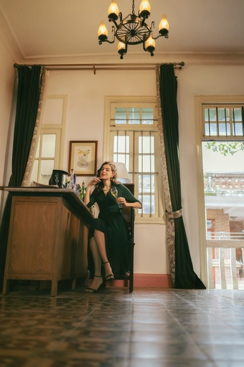 魔豆:Elaine 前期、后期:电脑侠客 器材:佳能 EOS R5、RF 35 F1.4L VCM 活动组织:明亮先生 作者随想:拍国产模特儿久了,容易审美疲劳,这次改拍洋模转转胃口。当我风尘仆仆地赶到拍摄场地,只见房间装修布置非常有年代感,看得出房东非常有实力,为此花了不少心思和财力。斑驳复古的地砖和精致的灯饰深得我心,现场补光灯具一应俱全,等开拍的时候得好好利用一下。由于很长时间没有拍洋模了,再加上语言沟通不畅,所以刚开拍时,整个人的状态浑浑噩噩,迟迟找不到感觉,连我自己都不知道拍出个啥玩意来。直到房东贴心地给洋模递上洋酒和墨镜,在灯光下洋模又美又飒的造型,瞬间打通了鄙人的任督二脉,久违的摄影灵感终于来了!前期思路打开了,后期选图修图就简单了。为了充分利用好现场光线环境和服装道具,体现出洋模身上那种高大上的气质,加上鄙人对欧美人像的一点理解,决定采用橙色调欧美复古风格,加强冷暖对比,修复部分场景瑕疵,搞定!整组片子在洋溢着加州阳光味道的同时,又能凸显墨绿色服饰独有的高贵气质,跟洋模的外形条件完美融合。在此感谢明亮先生的精心组织、房东的鼎力支持以及洋模小姐姐Elaine的精彩演绎!