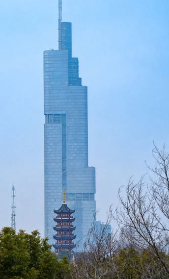 站在镜头后,我看着紫峰大厦的玻璃幕墙与鸡鸣寺塔的飞檐翘角在同一片蓝天下交叠,心里像被什么轻轻撞了一下。 现代的摩天楼刺破云层,古老的佛塔静立在绿意里,一高一低,一冷一暖,像两个跨越时空的老友,在薄雾里遥遥相望。按下快门的瞬间,我突然觉得,这不仅是一张照片,更是南京这座城最温柔的注脚——它把千年的厚重和当下的鲜活,都揉进了这一方取景框里。
