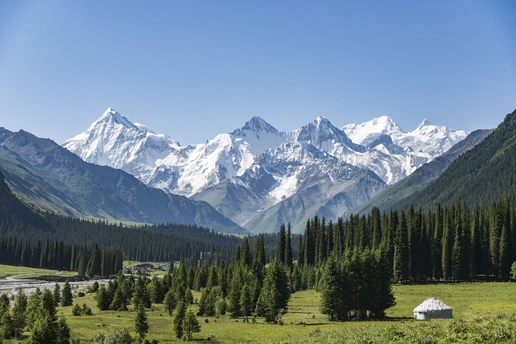 夏塔位于新疆伊犁昭苏县西南部,距离县城约70公里,是古代丝绸之路上最为险峻的古道之一。这条全长120公里的古道,翻越海拔3600米的哈塔木孜达坂,沟通天山南北,曾是伊犁通往南疆的捷径。 这张照片拍摄于夏塔景区核心区域,画面中呈现的是典型的夏塔地貌特征:前景为高山草甸和原始针叶林,背景是壮观的雪山冰川群。夏塔景区集山口、古道、古遗址、民俗和自然景观于一体,拥有水流湍急的夏塔河、烟波浩渺的特克斯河,以及保存完好的古文化遗迹。作为国家森林公园,这里生物多样性丰富,是新疆境内保存较好的自然与文化双重遗产地。